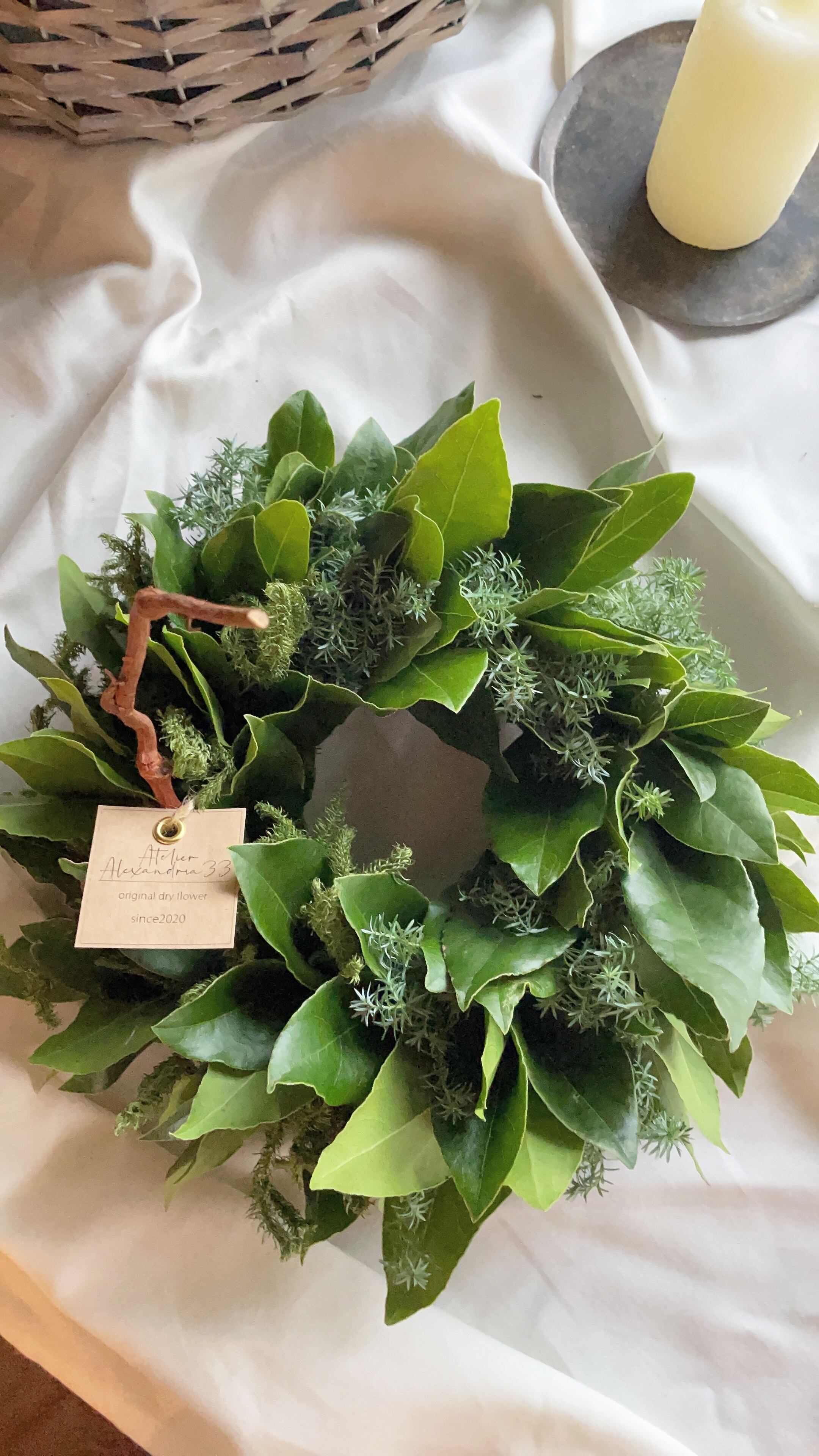 神聖な月桂樹のシンプルなフルリース○ドライフラワーリース