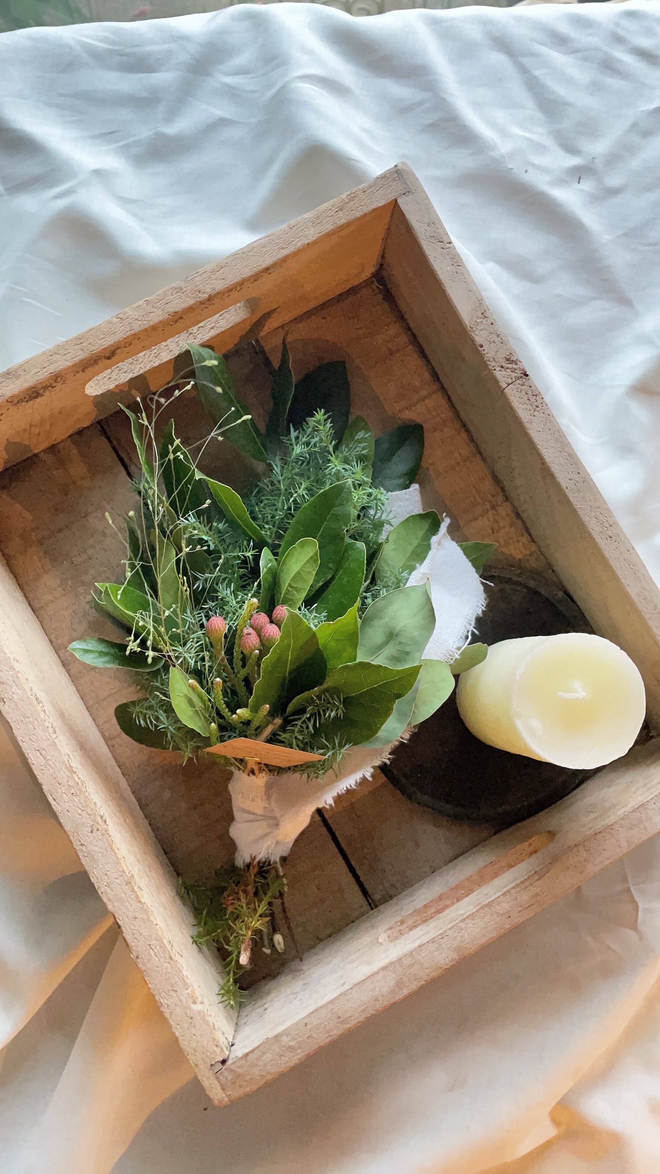 ホワイトのコットンリボンでキュッと束ね