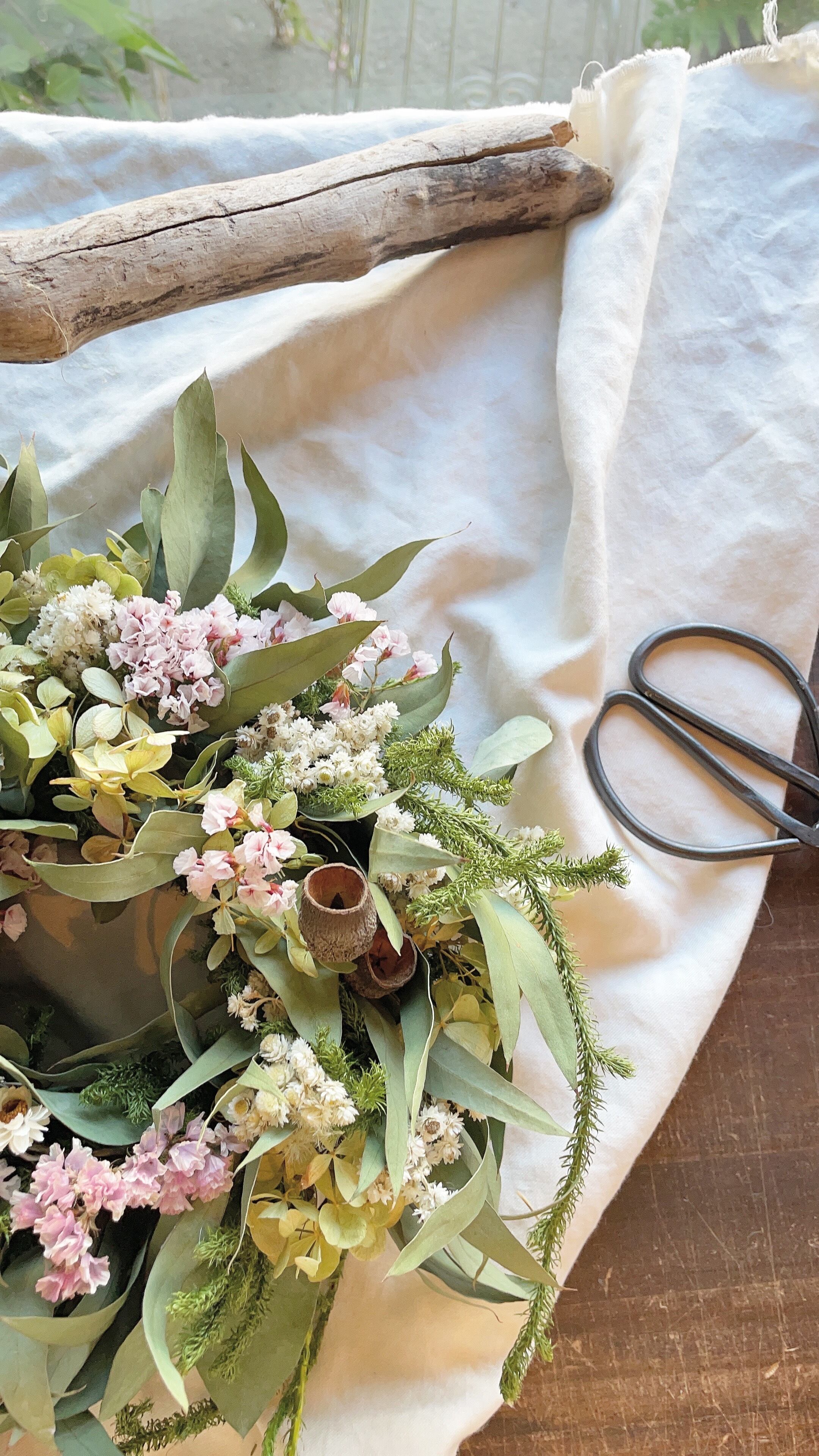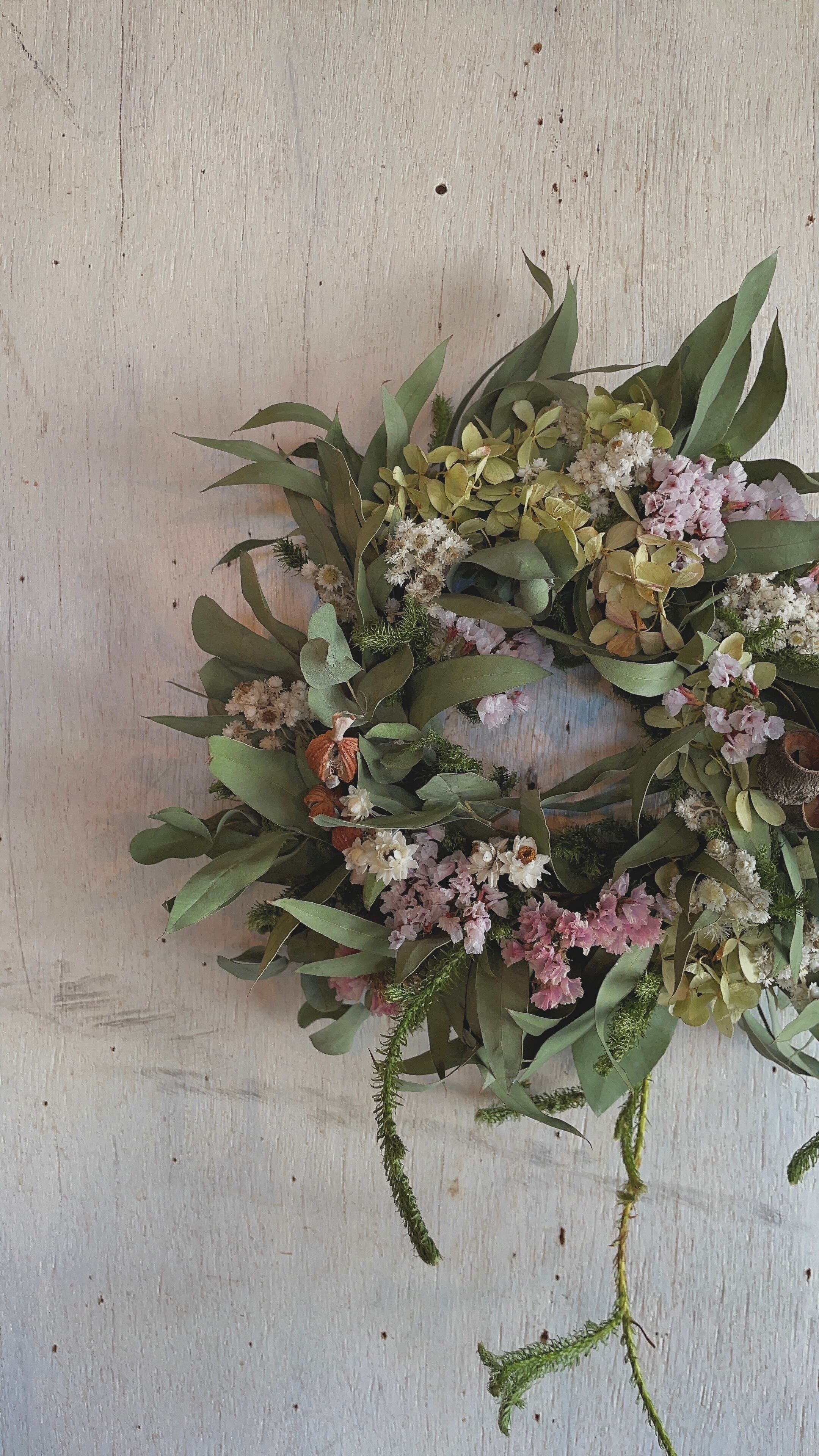動きあるユーカリと小花のリース○ドライフラワーリース