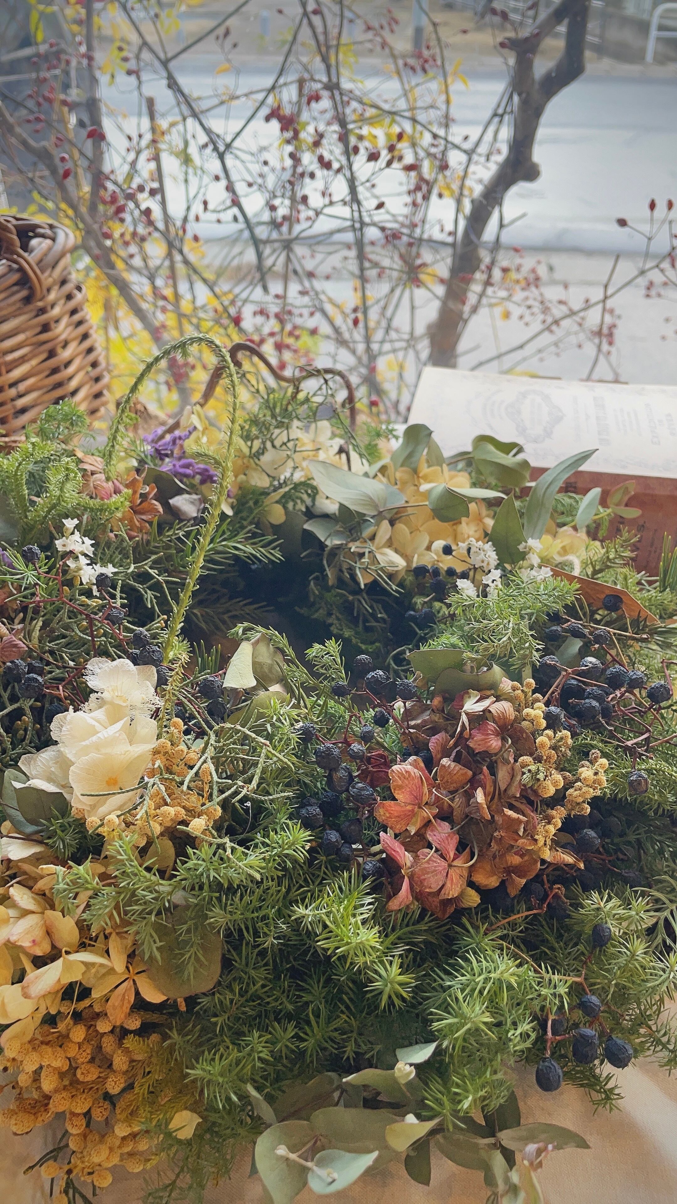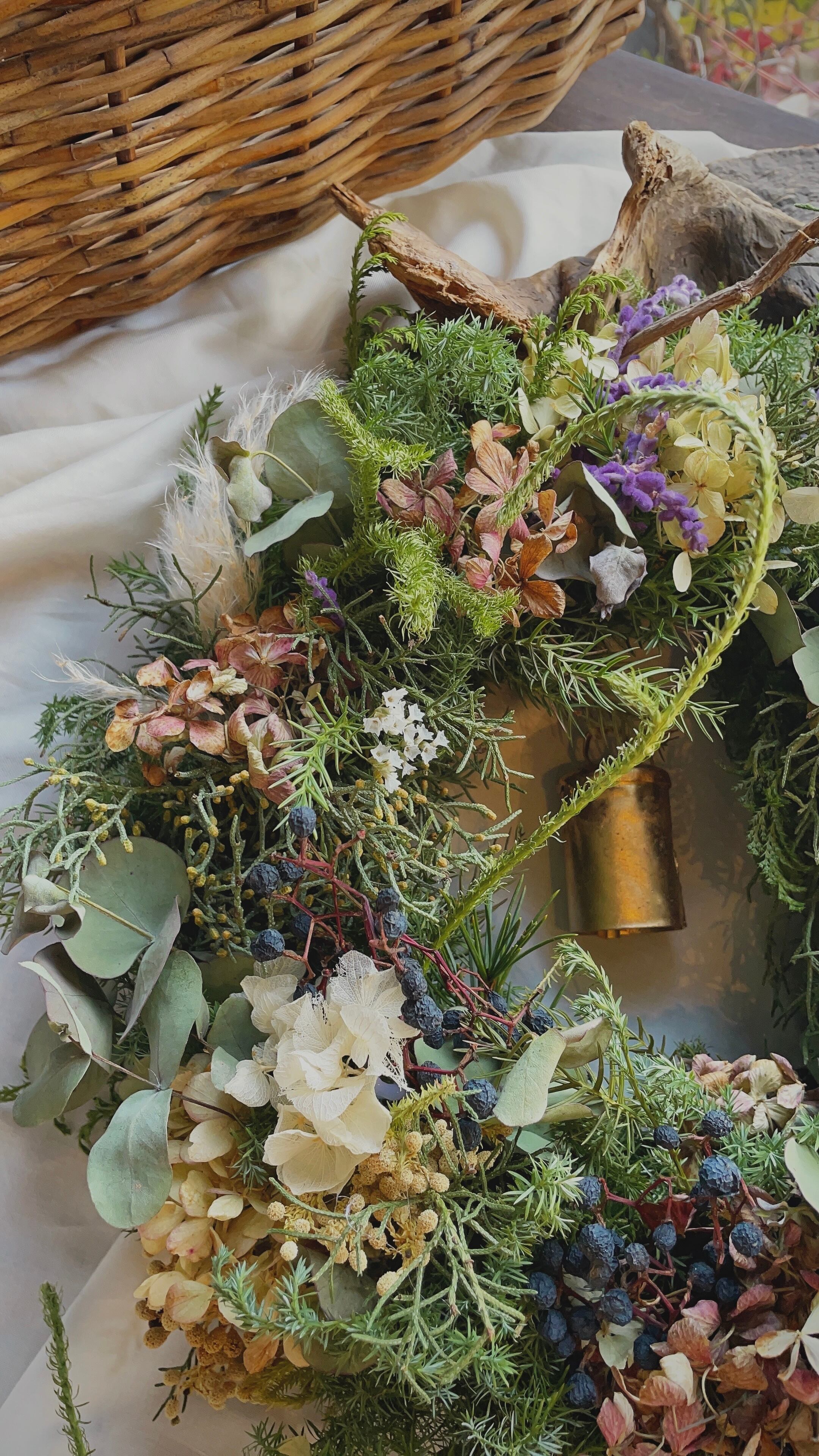 アンティーク感溢れる3種のあじさいのリース