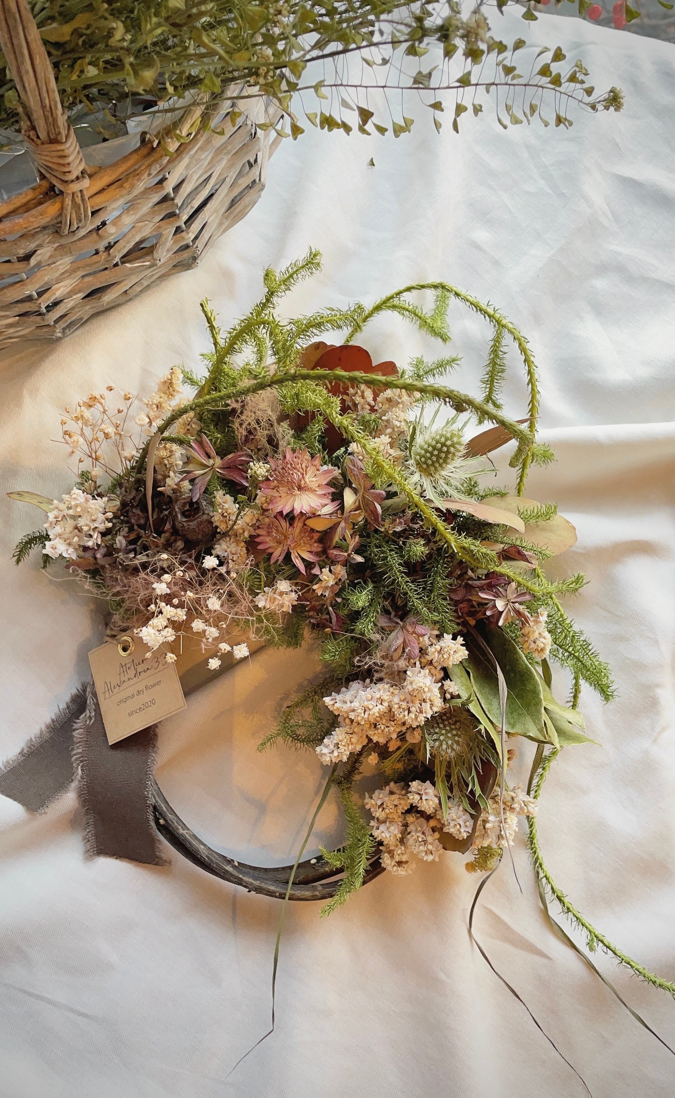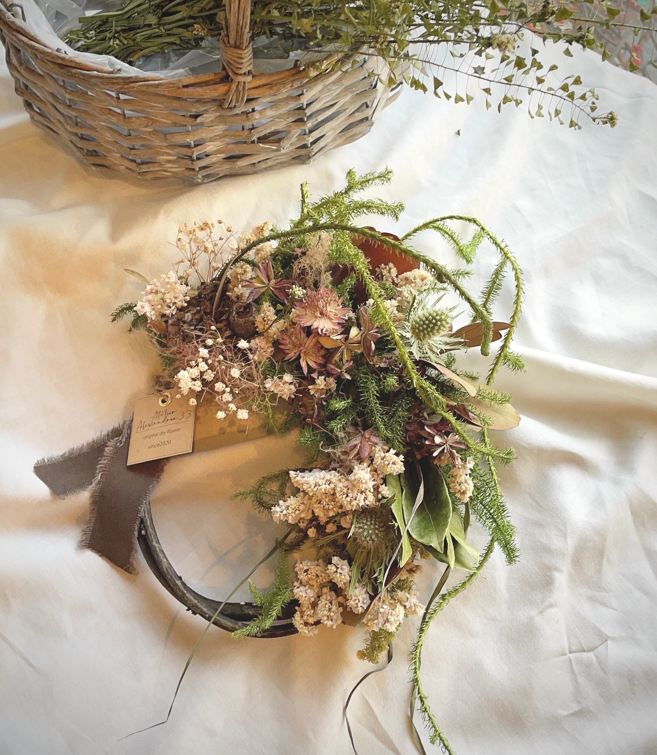 〜動きあるアストランチアの花束のようなアンティークリース○ドライフラワーリース