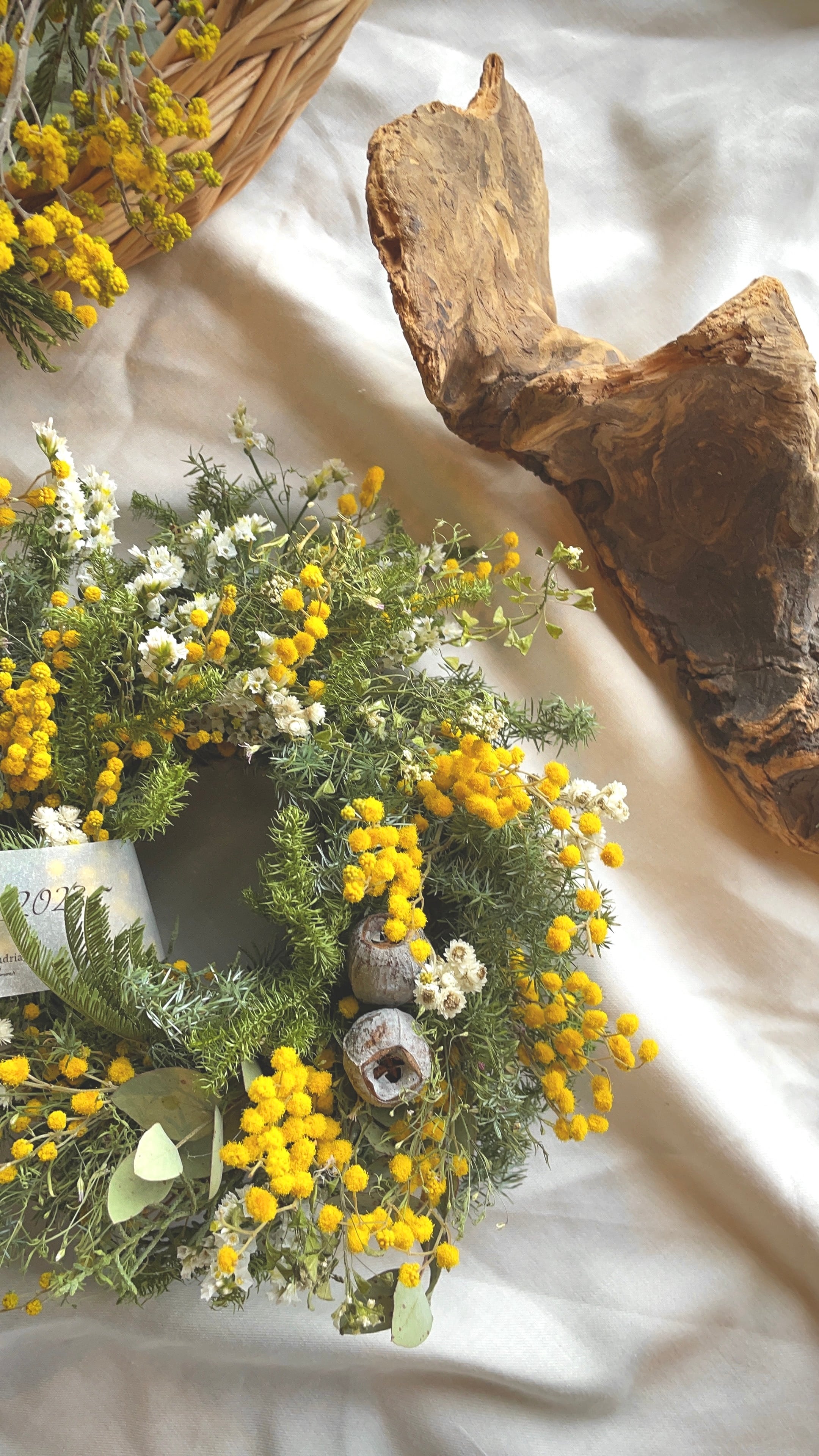 mimosa wreathe〜ミモザミランドールのコロンとしたリース