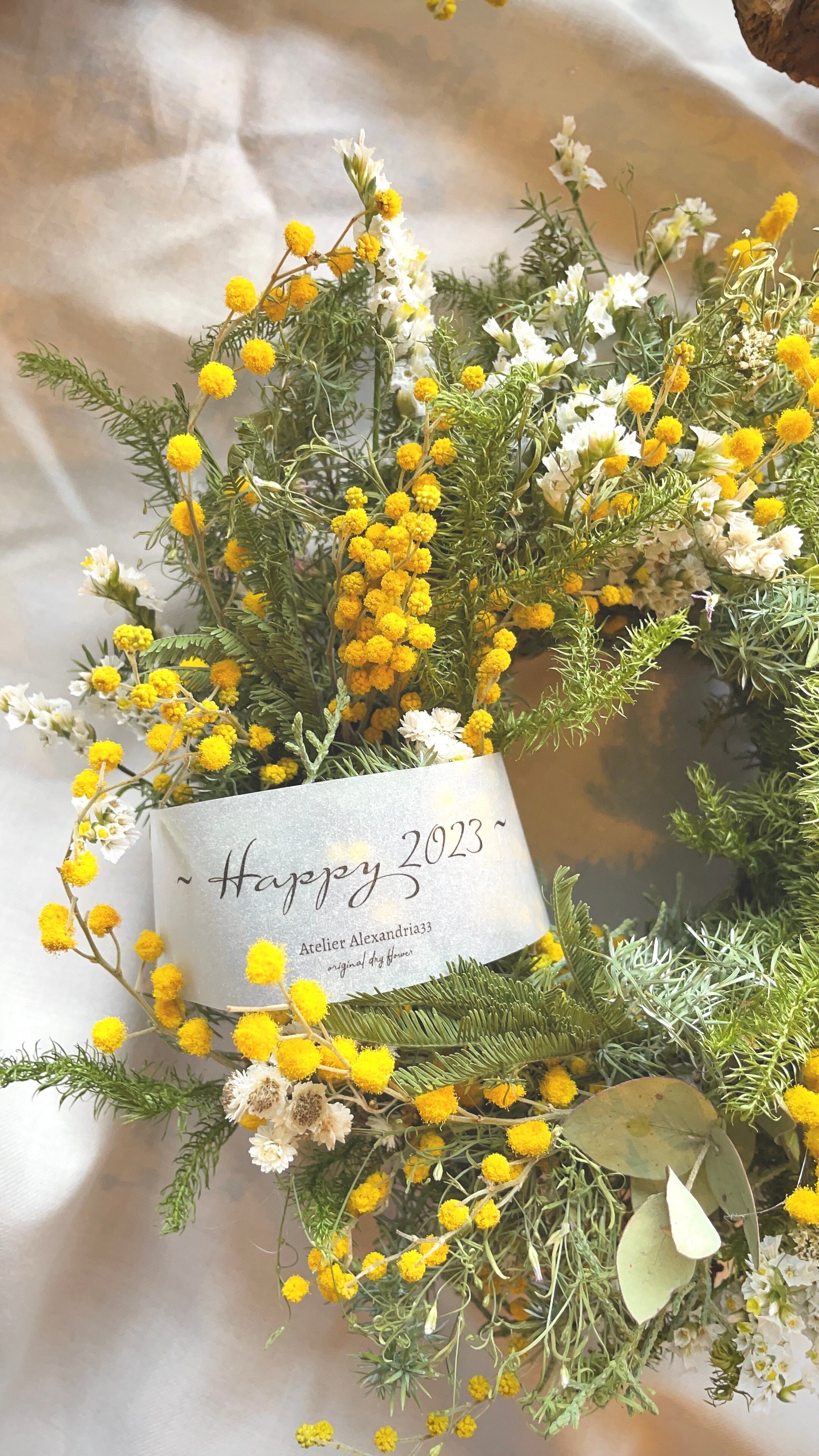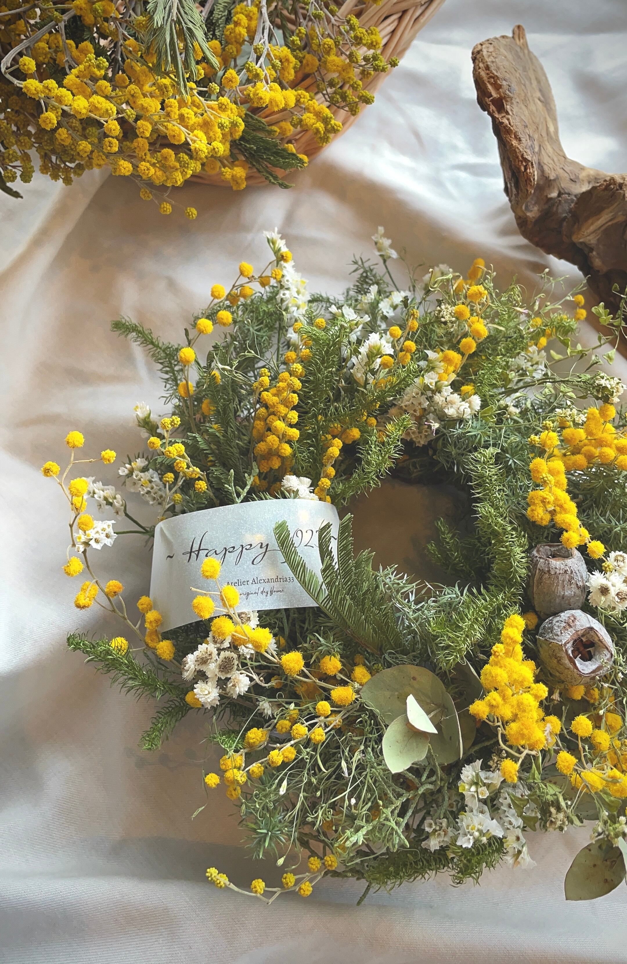 ※アトリエにて、ミモザの退色を防ぐ加工を施しています。