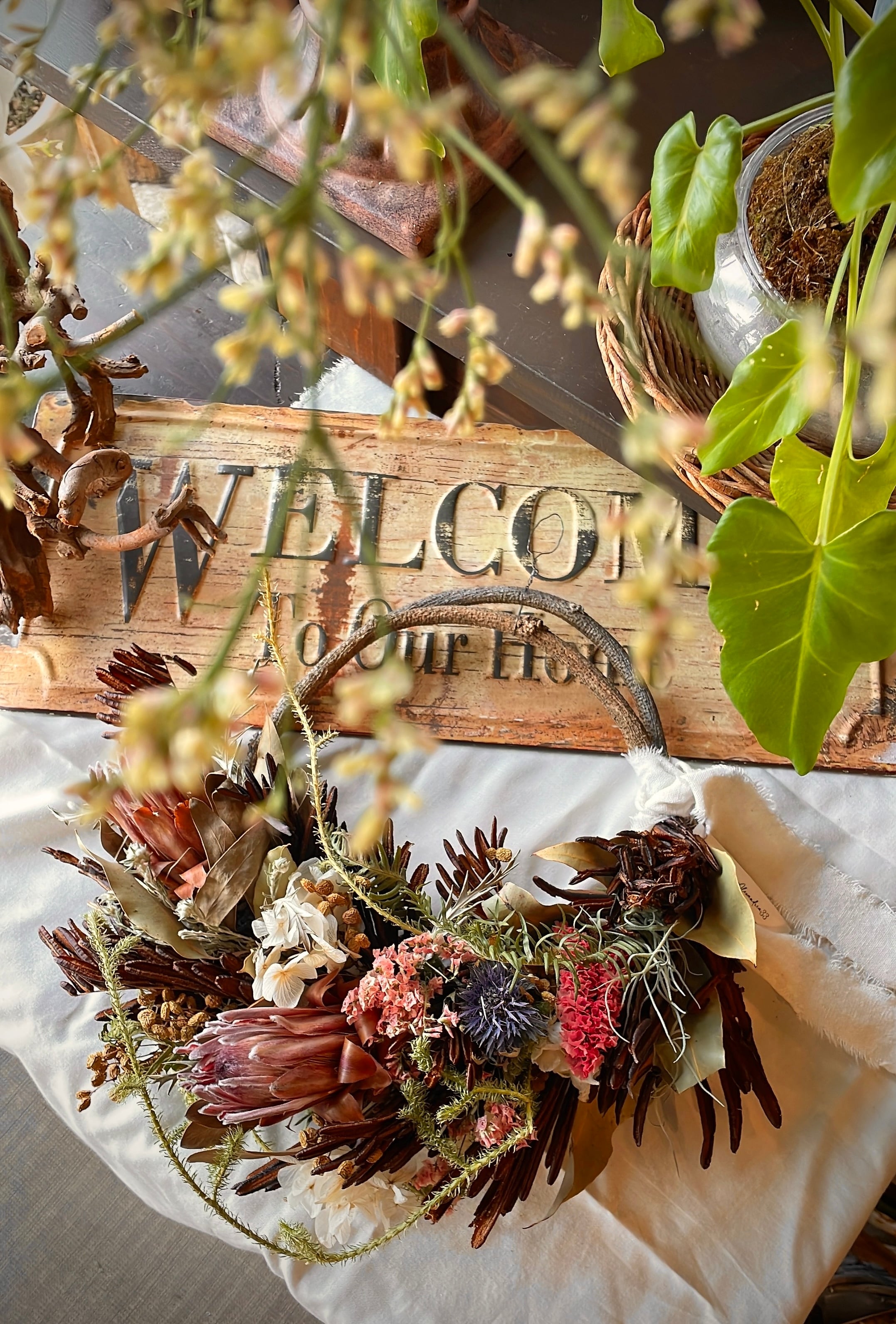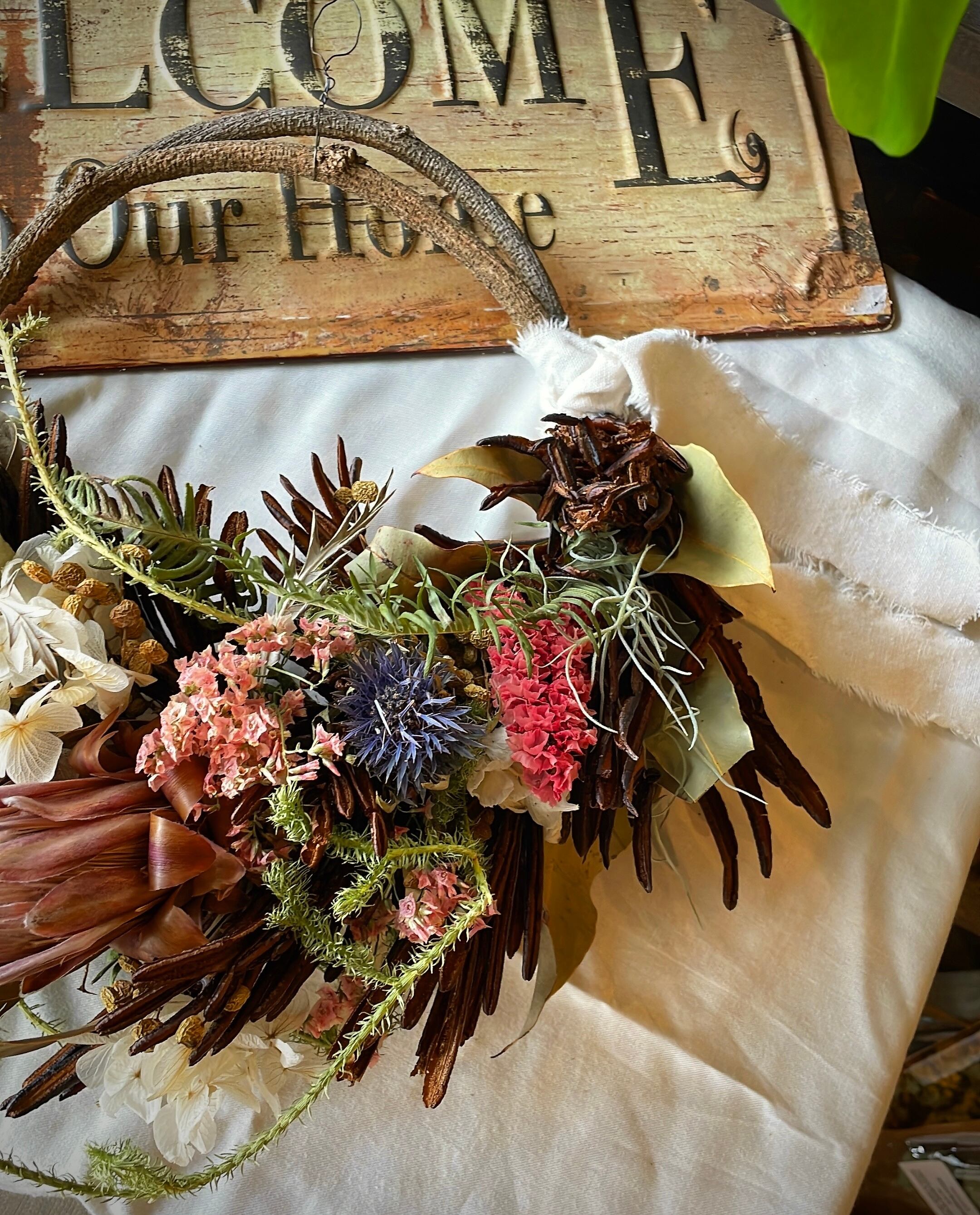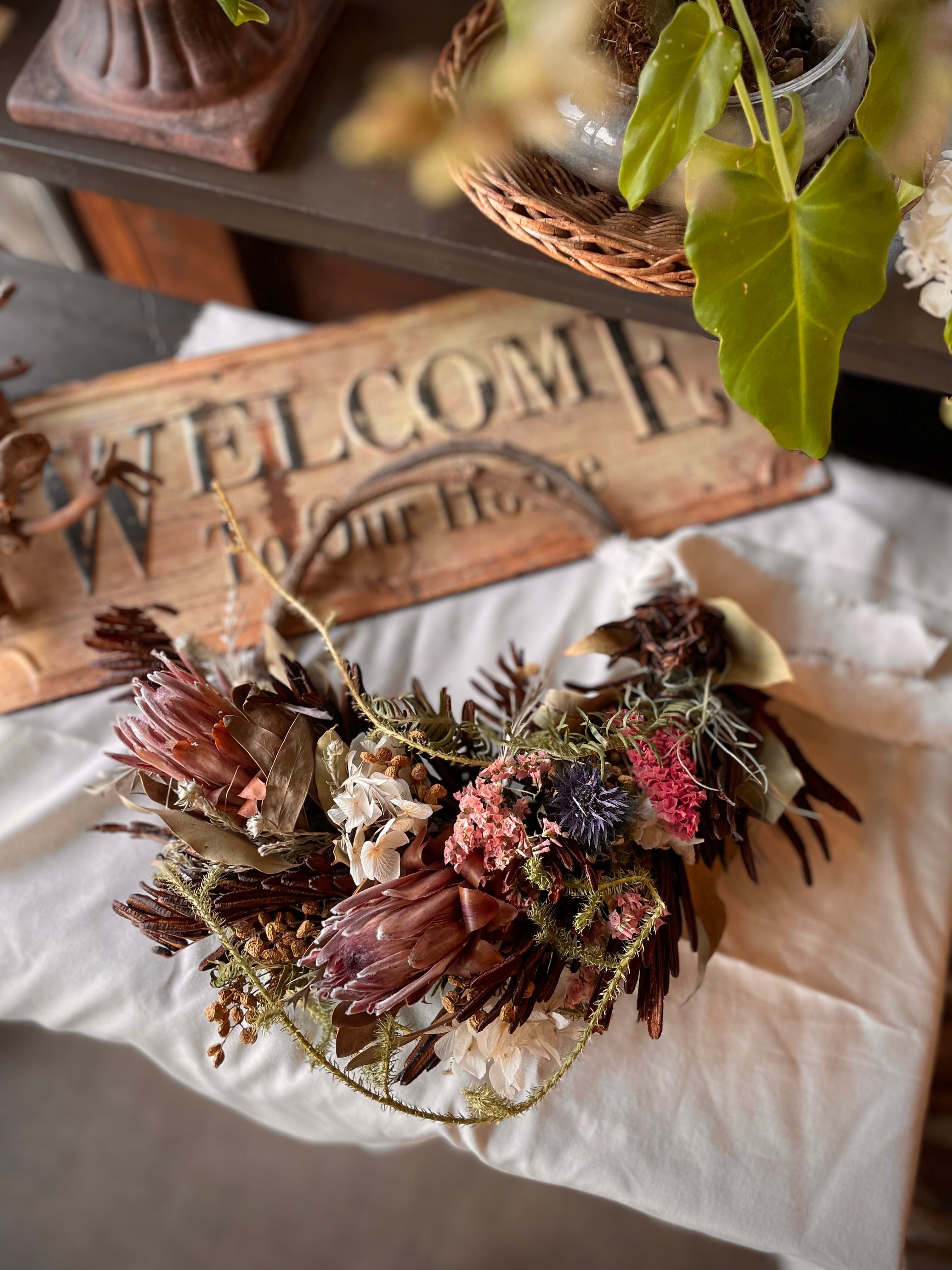 プロテアのナチュラルアンティークハーフリース○ドライフラワーリース