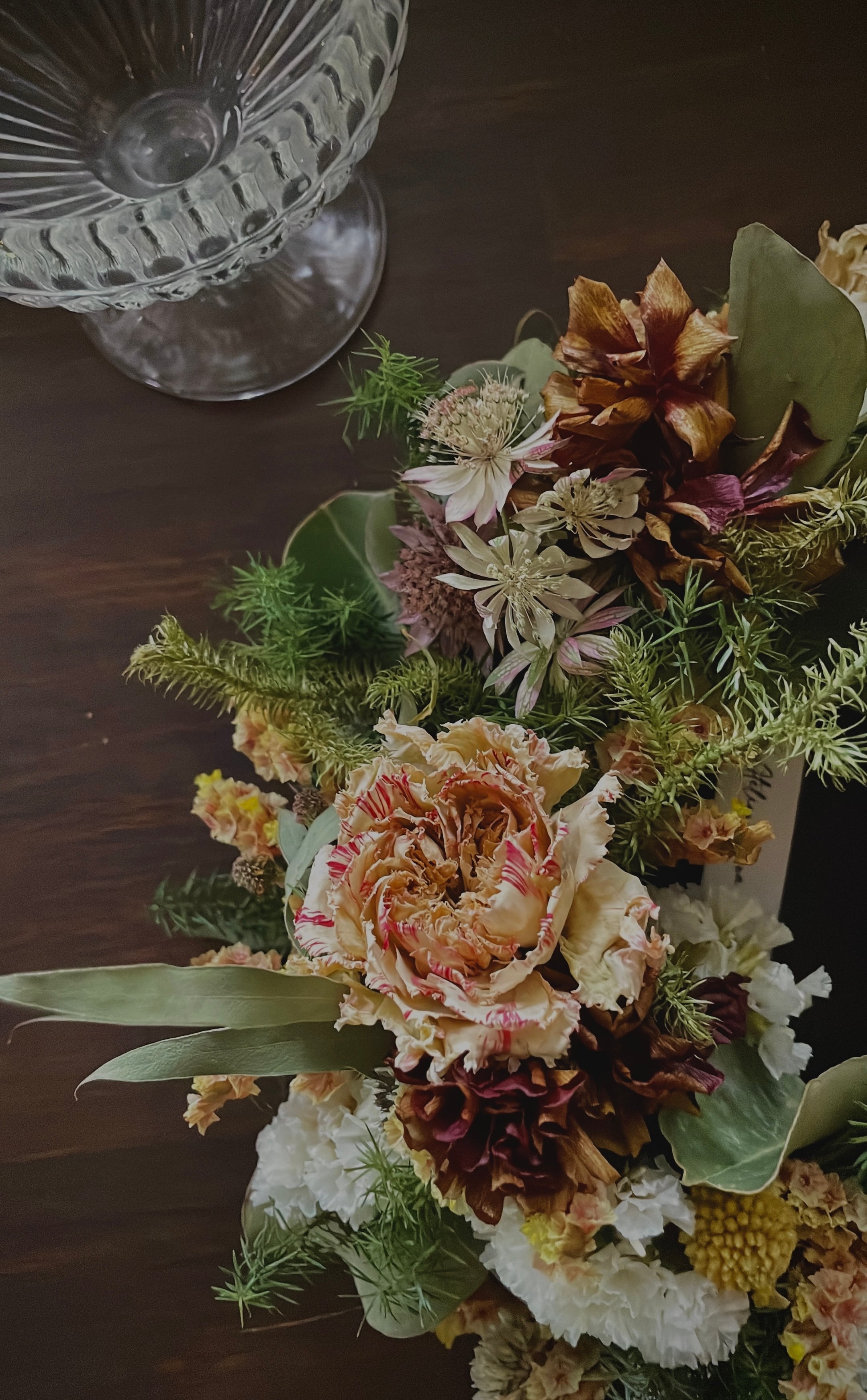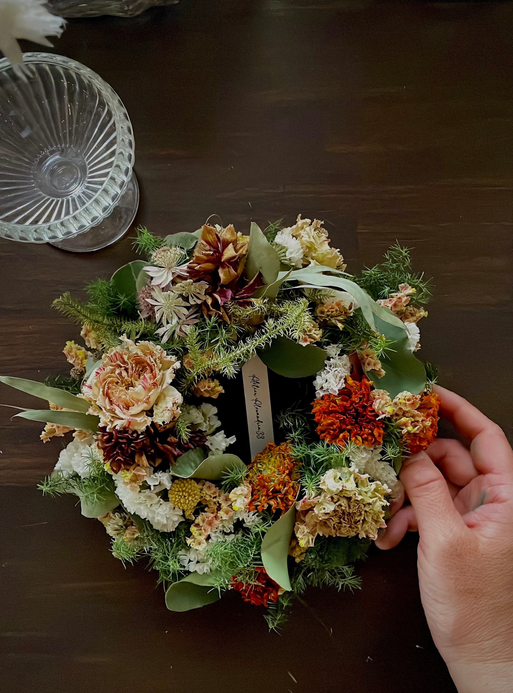 ラナンキュラスとカーネーションのアレンジリース○ドライフラワーリース
