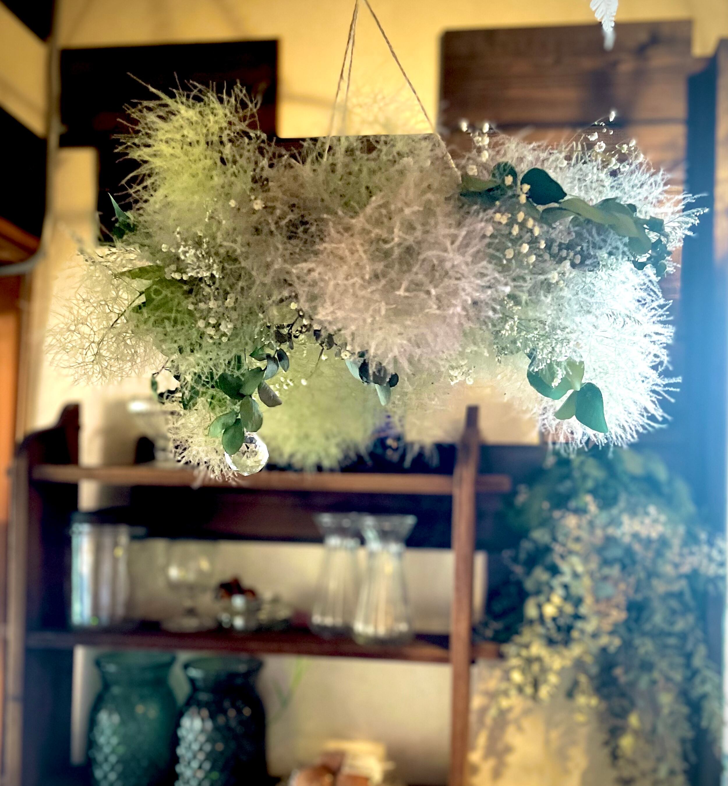 スモークツリーの大きなフライングリース○ドライフラワーリース