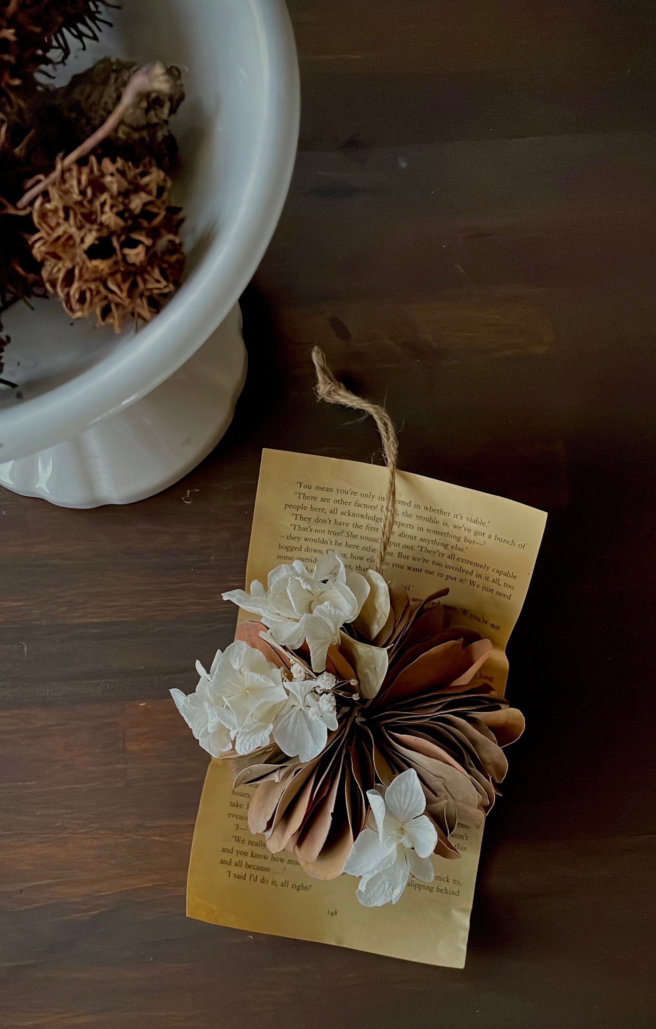 ポポラスとホワイトあじさいの手のひらミルフィーユリース○ドライフラワーリース