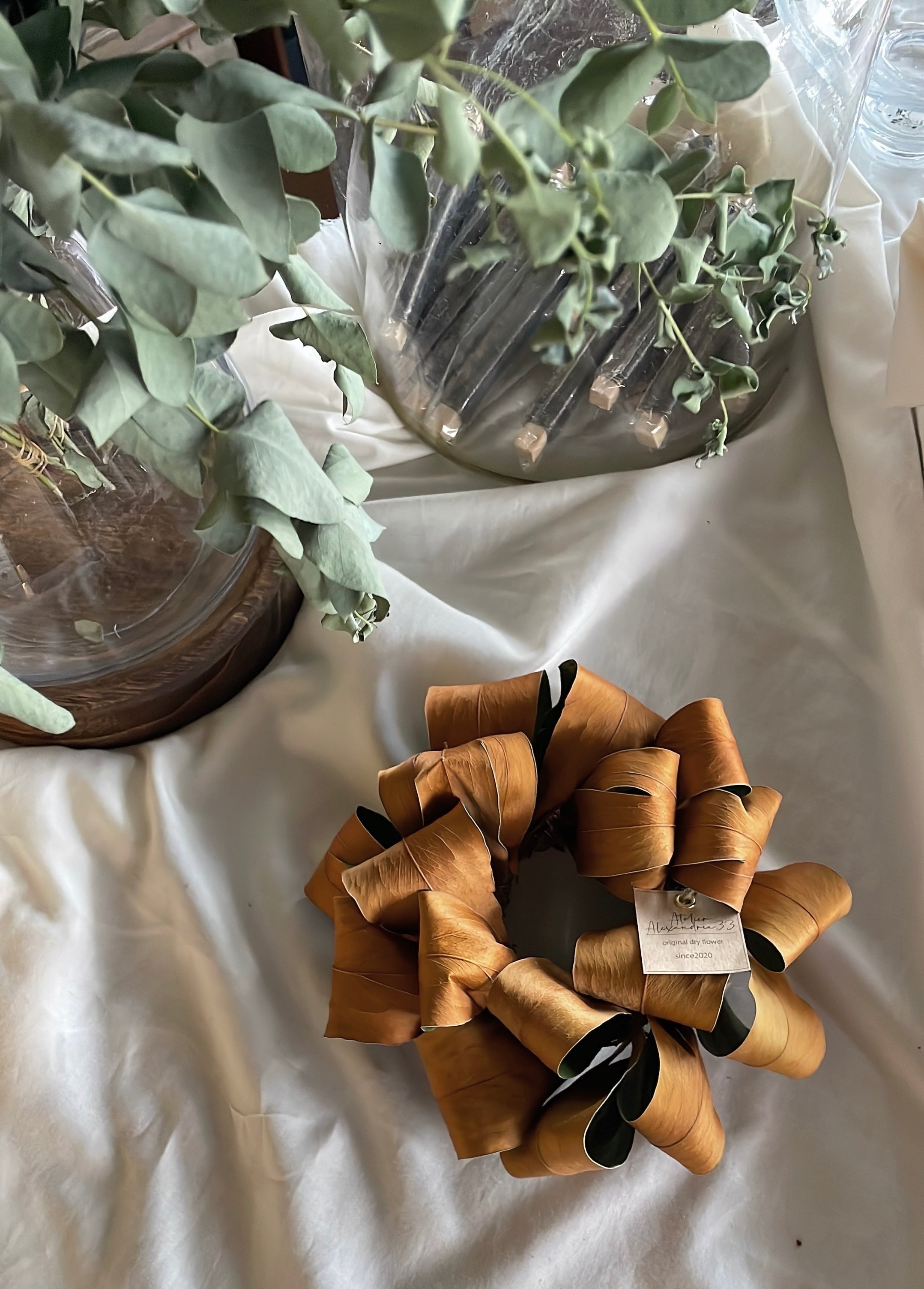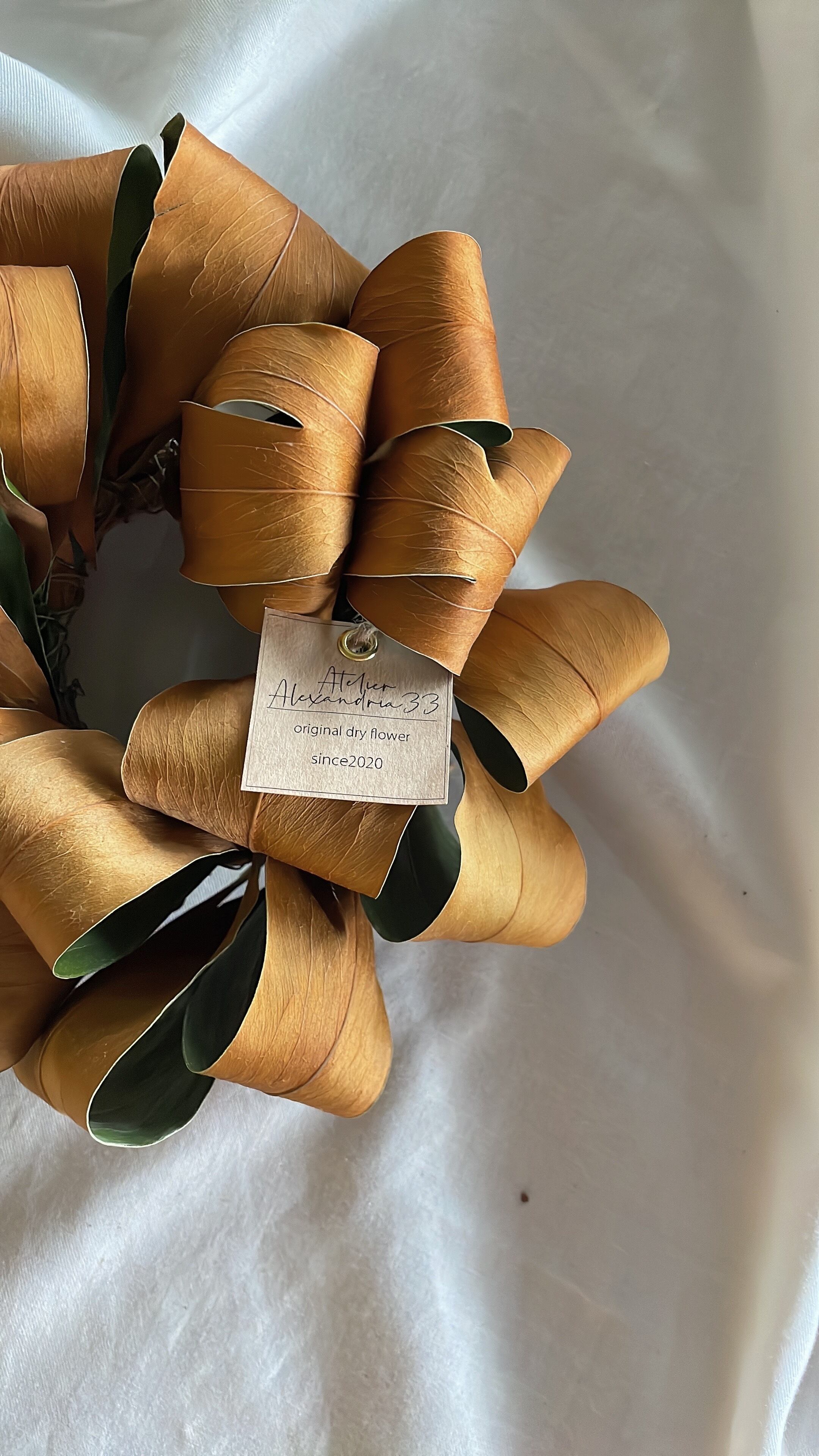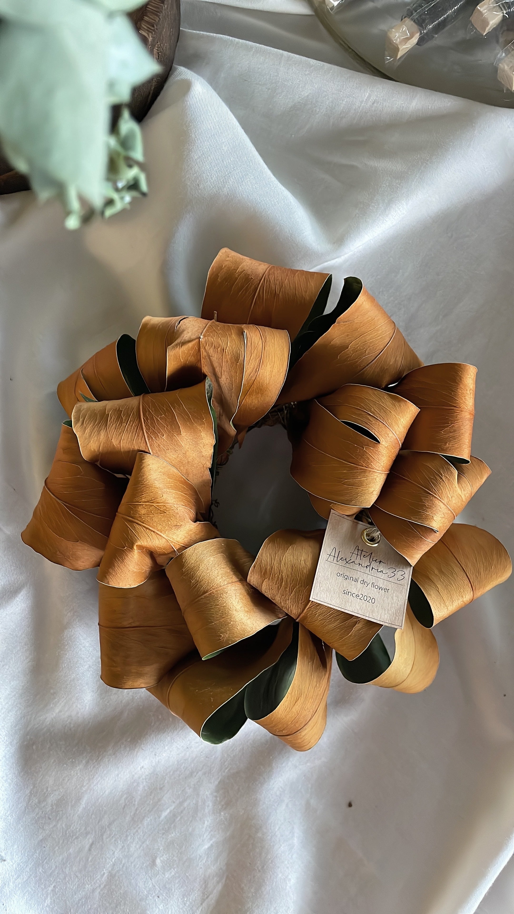 黄金色に輝く、グレビアゴールドのリース○ドライフラワー