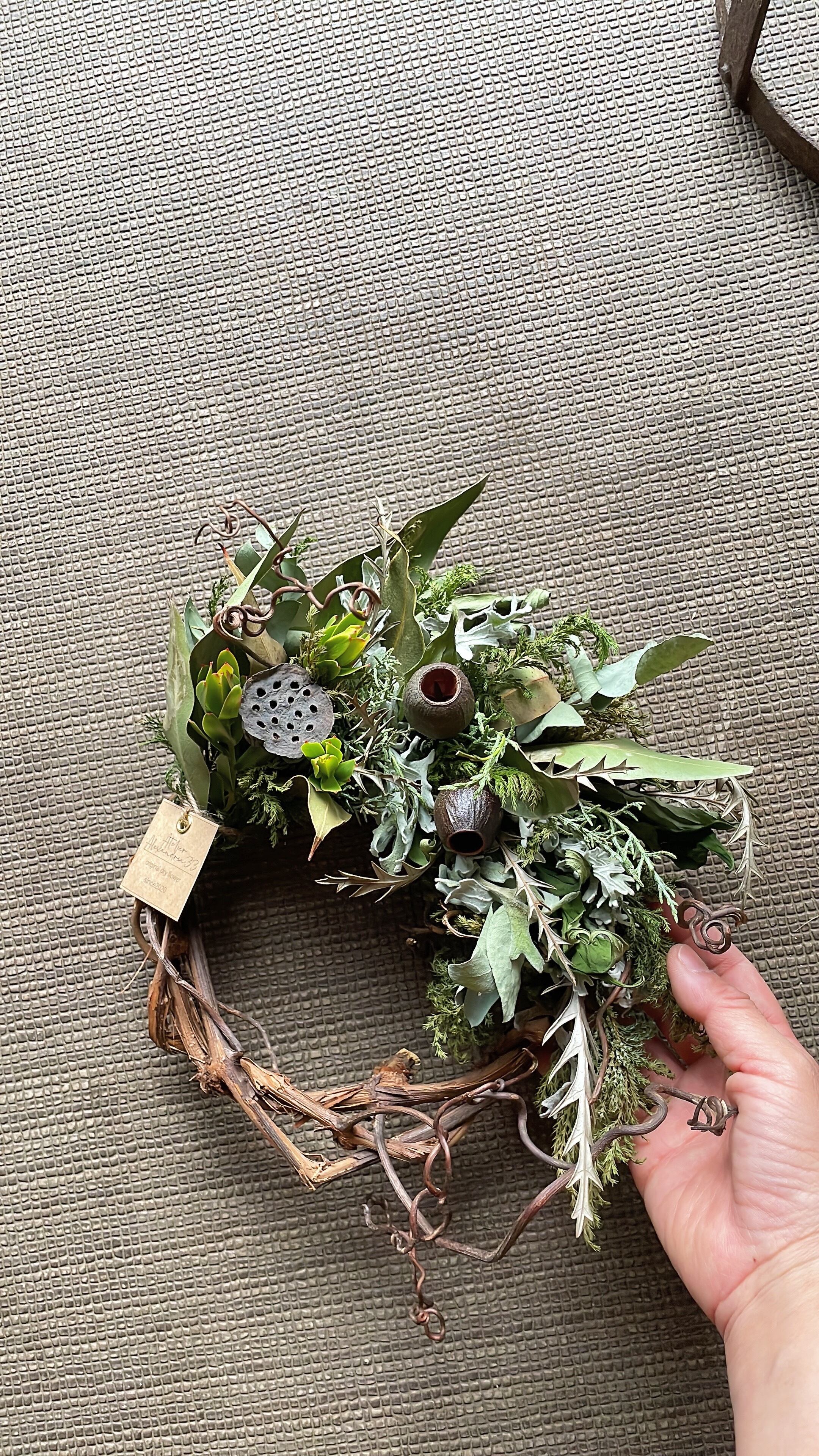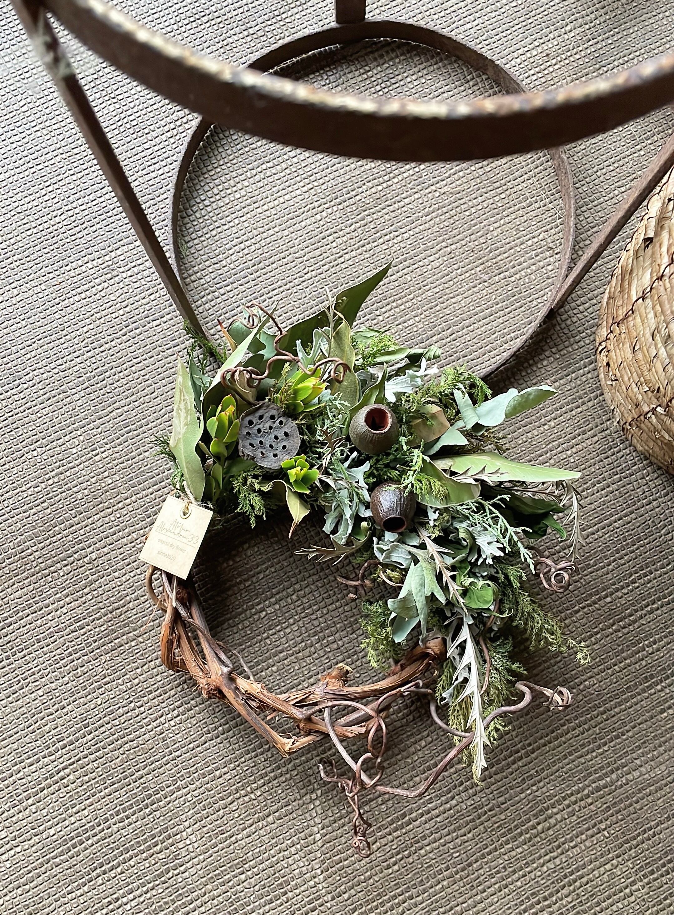 山葡萄蔓に緑豊かなナチュラルハーフリース○ドライフラワーリース