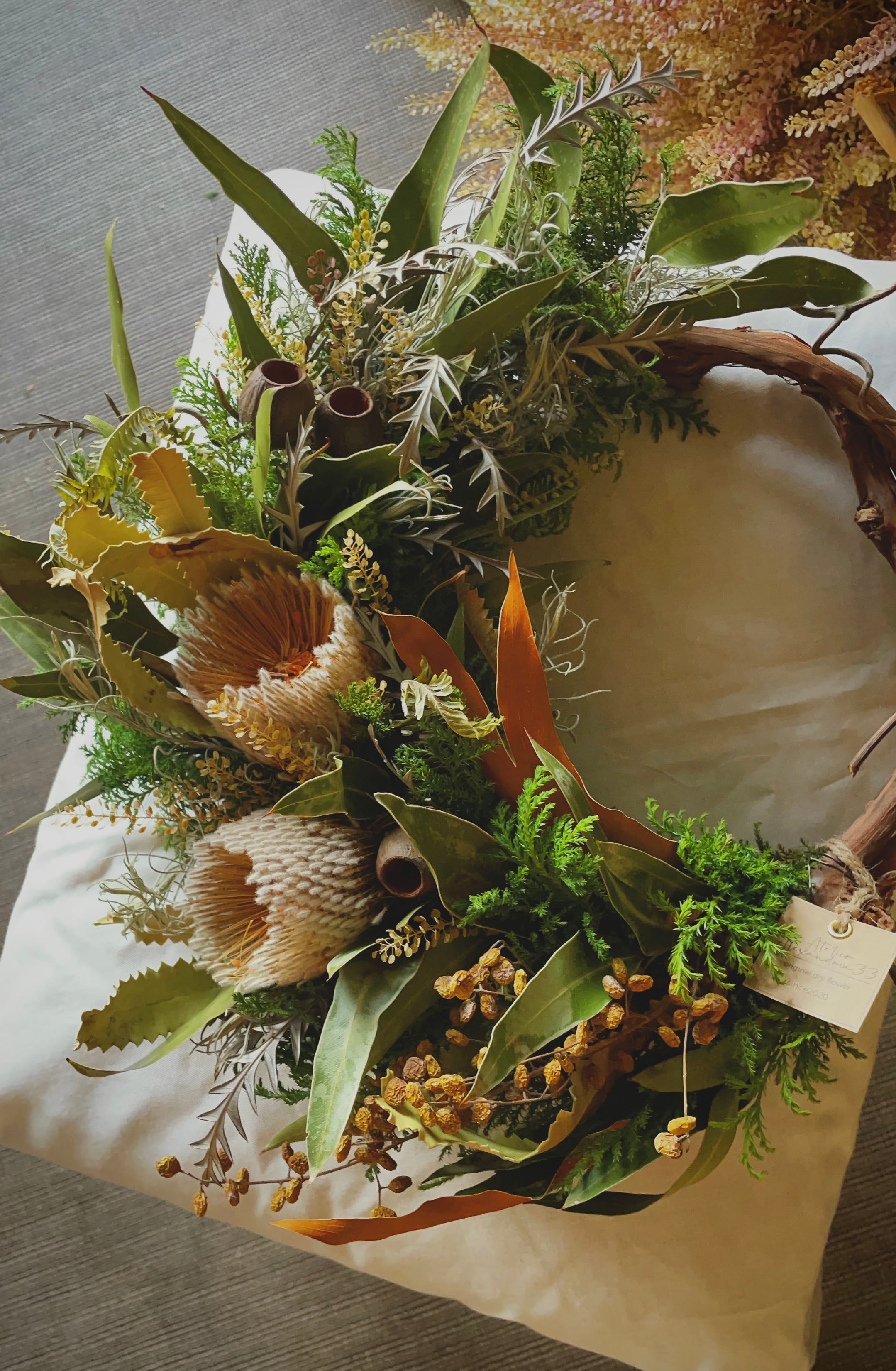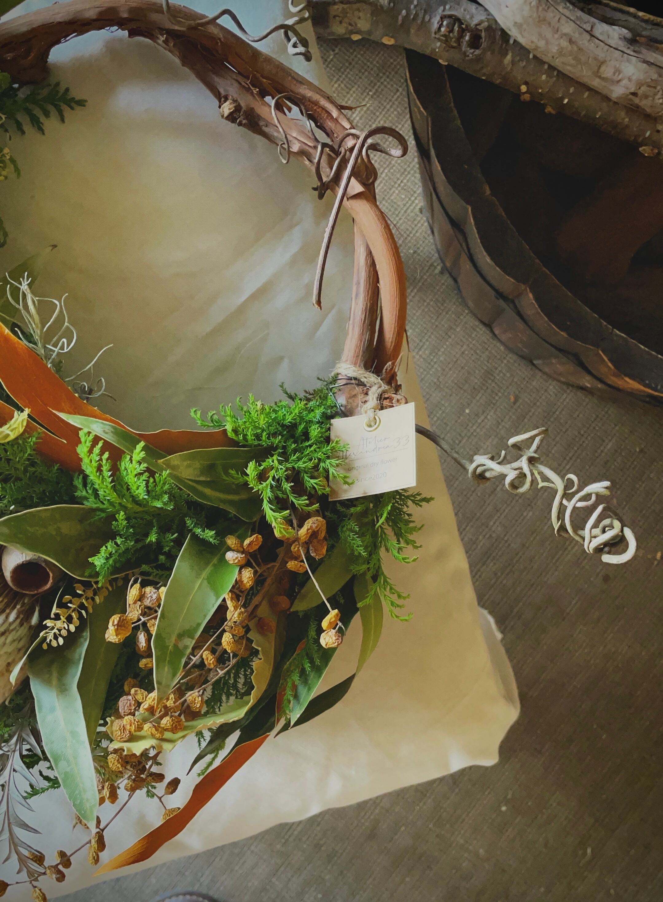 山葡萄蔓にユーカリグリーンのワイルドリース○ドライフラワーリー