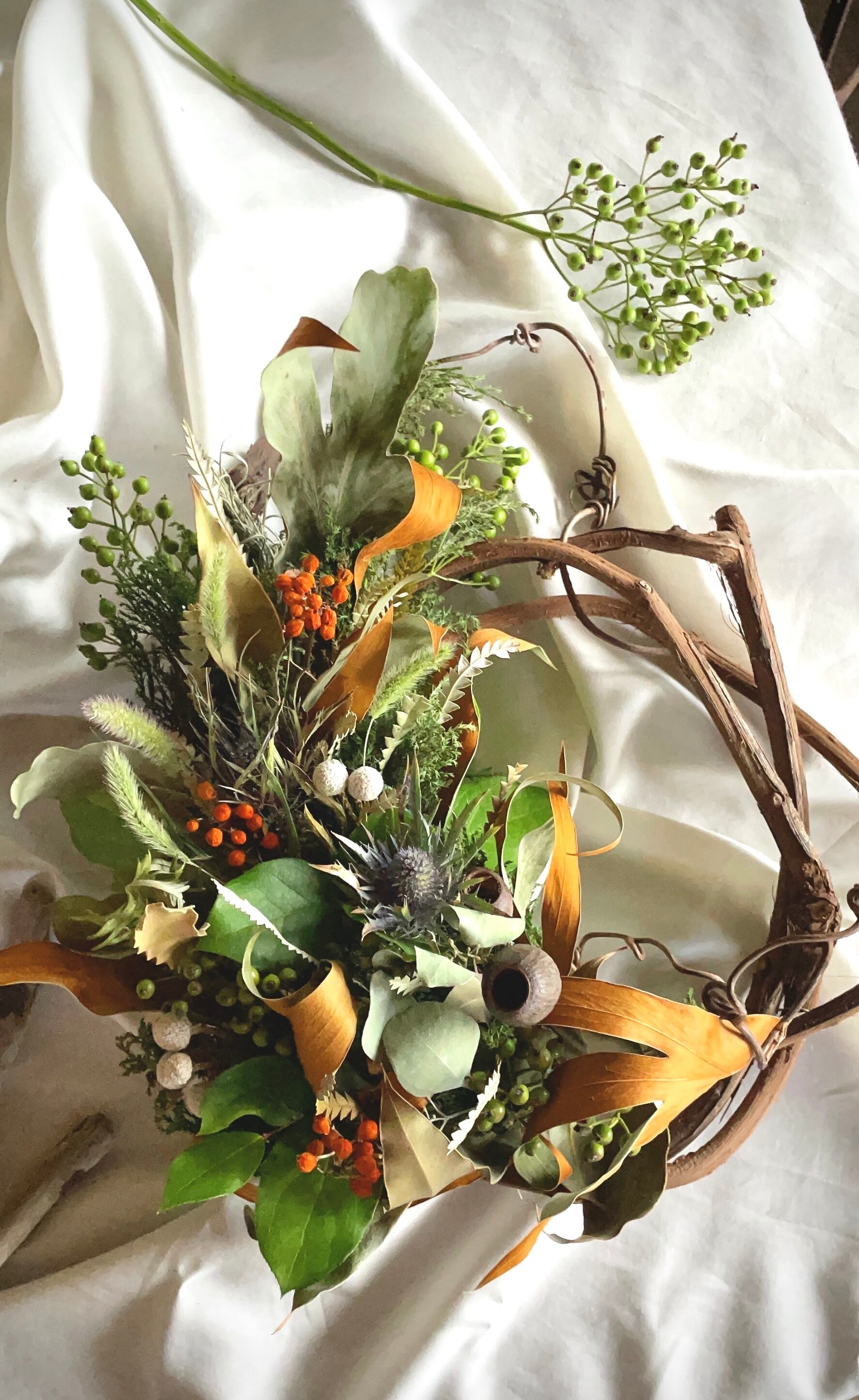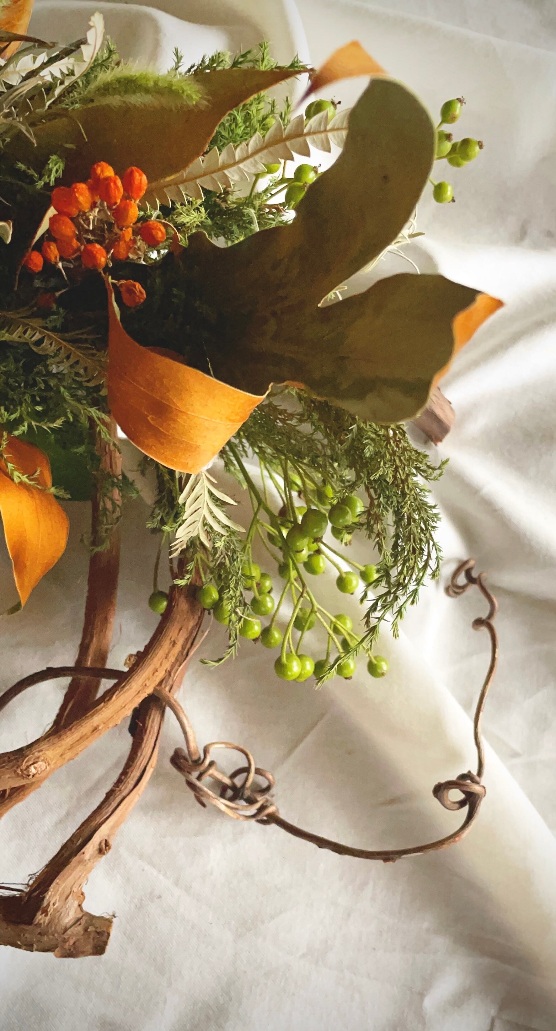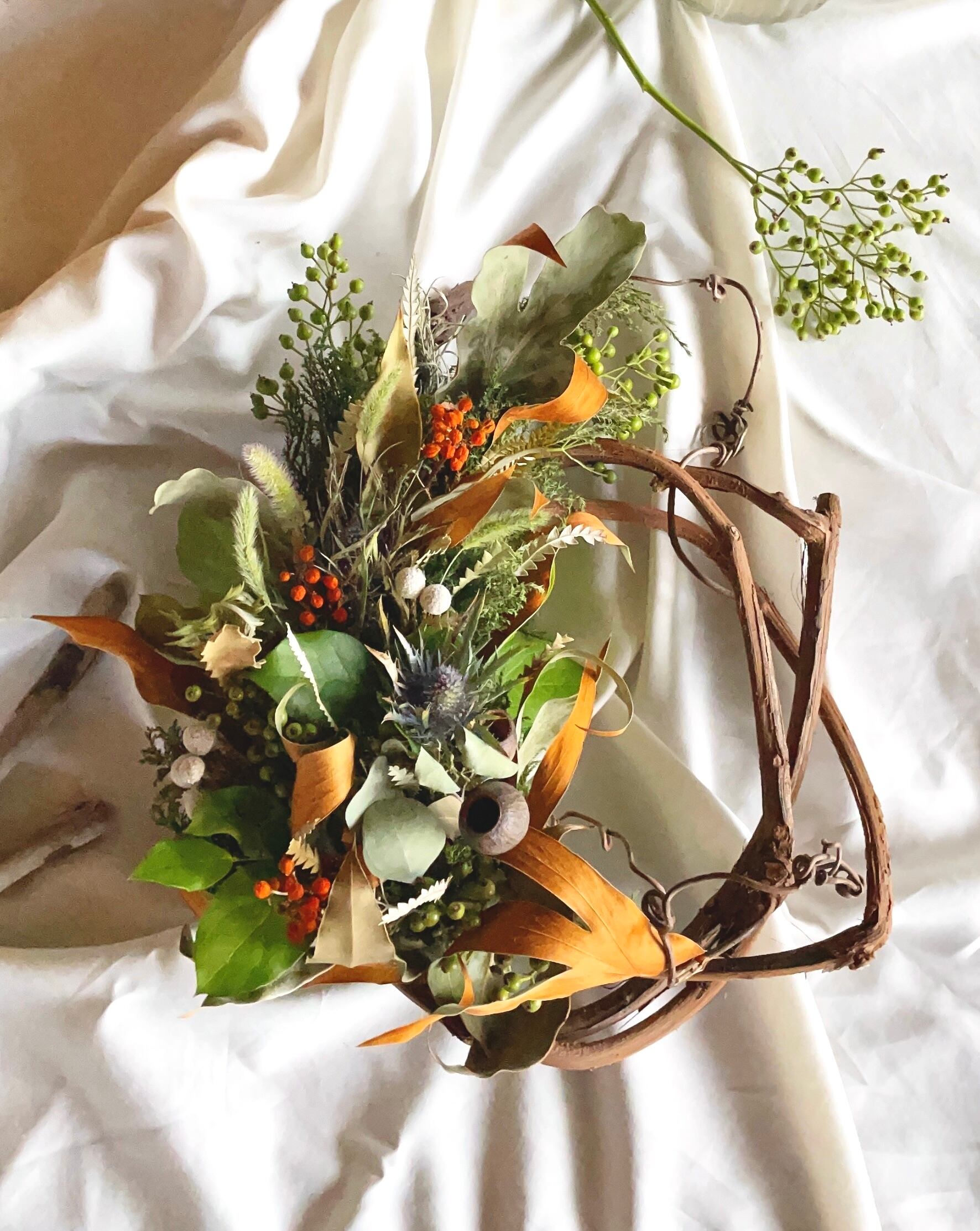 〜秋の気配〜山葡萄蔓とベリーたちのグリーンリース○ドライフラワーリース