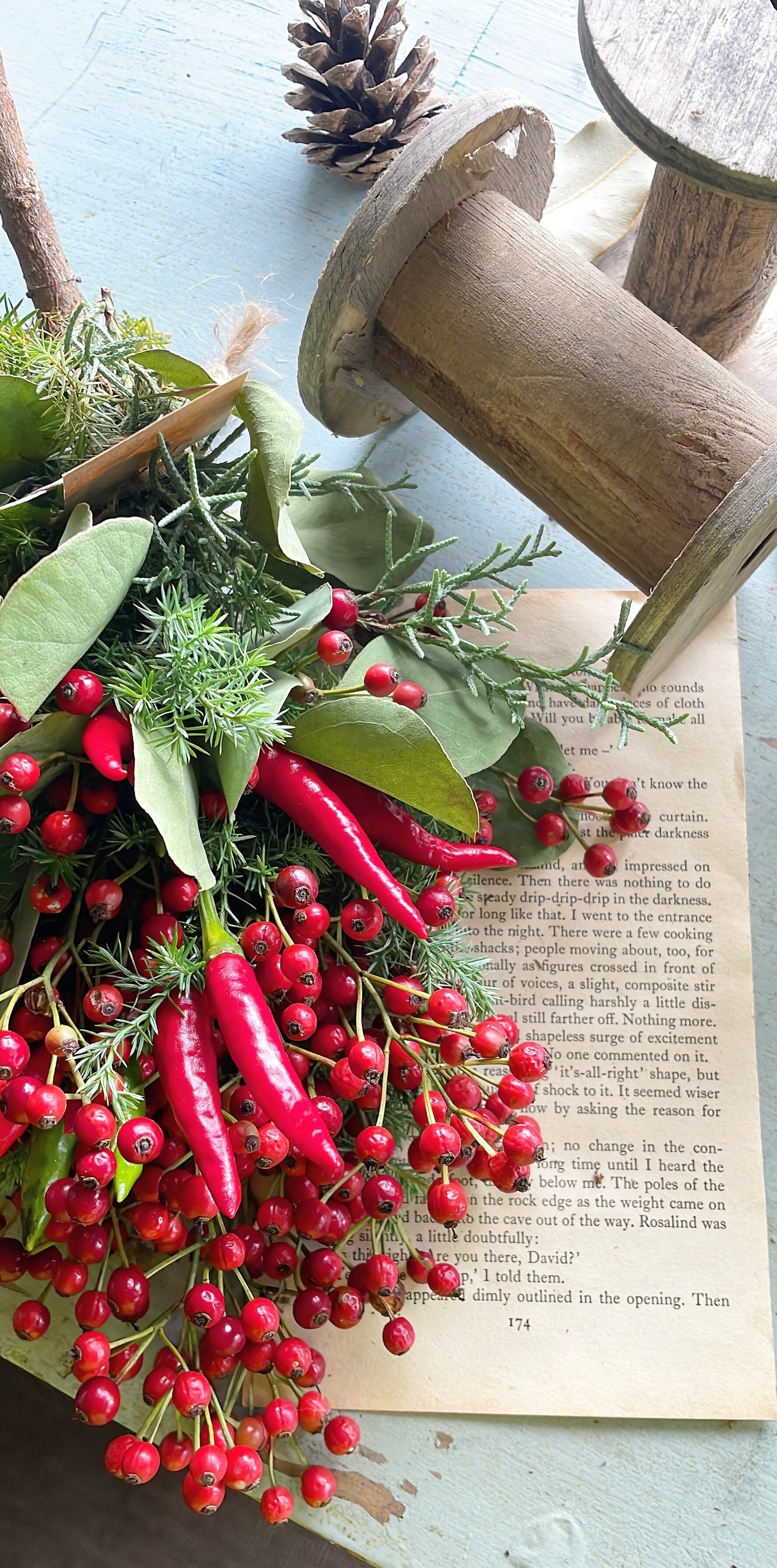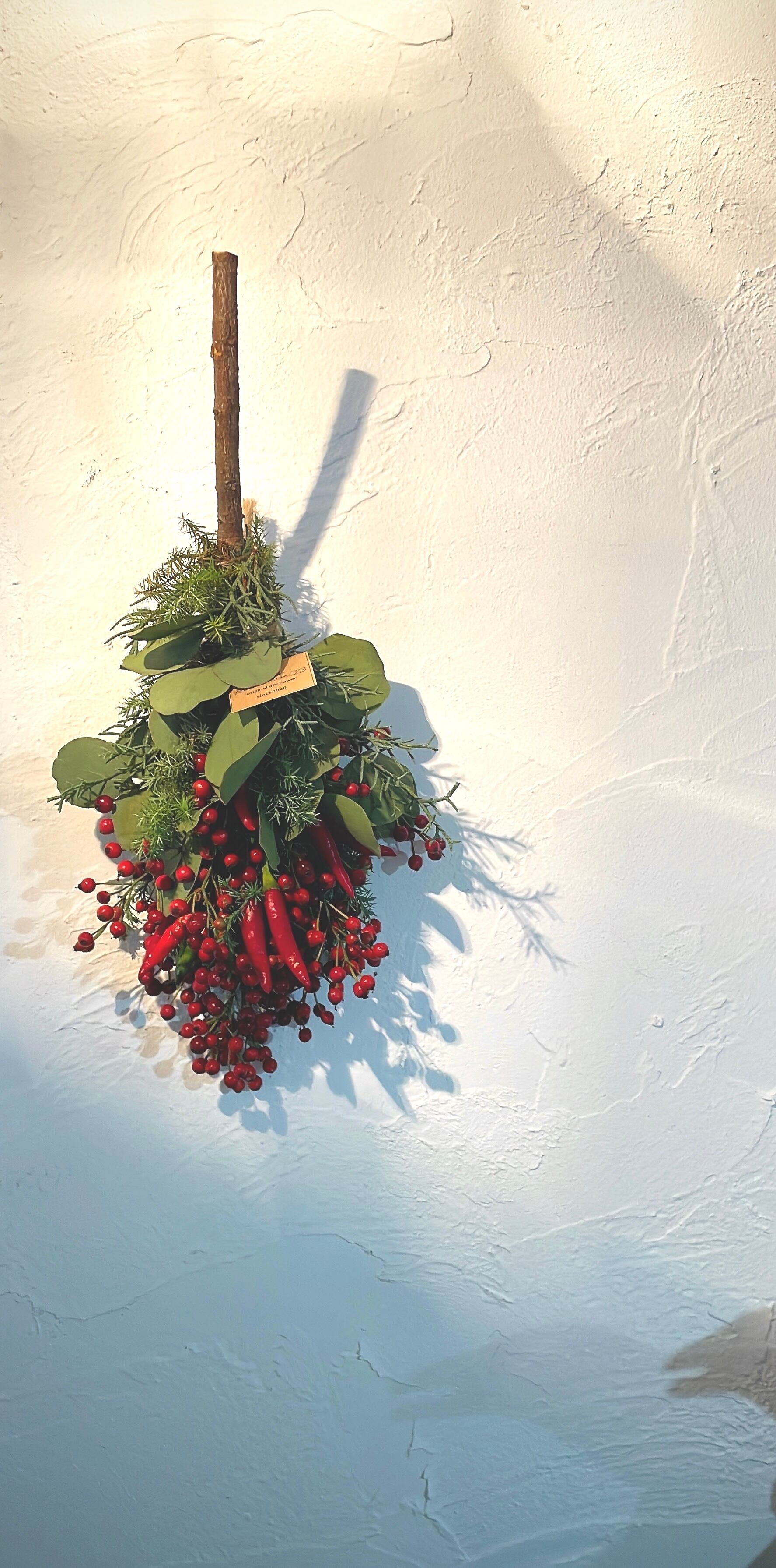 赤い野薔薇の実とグリーンのひと枝スワッグ