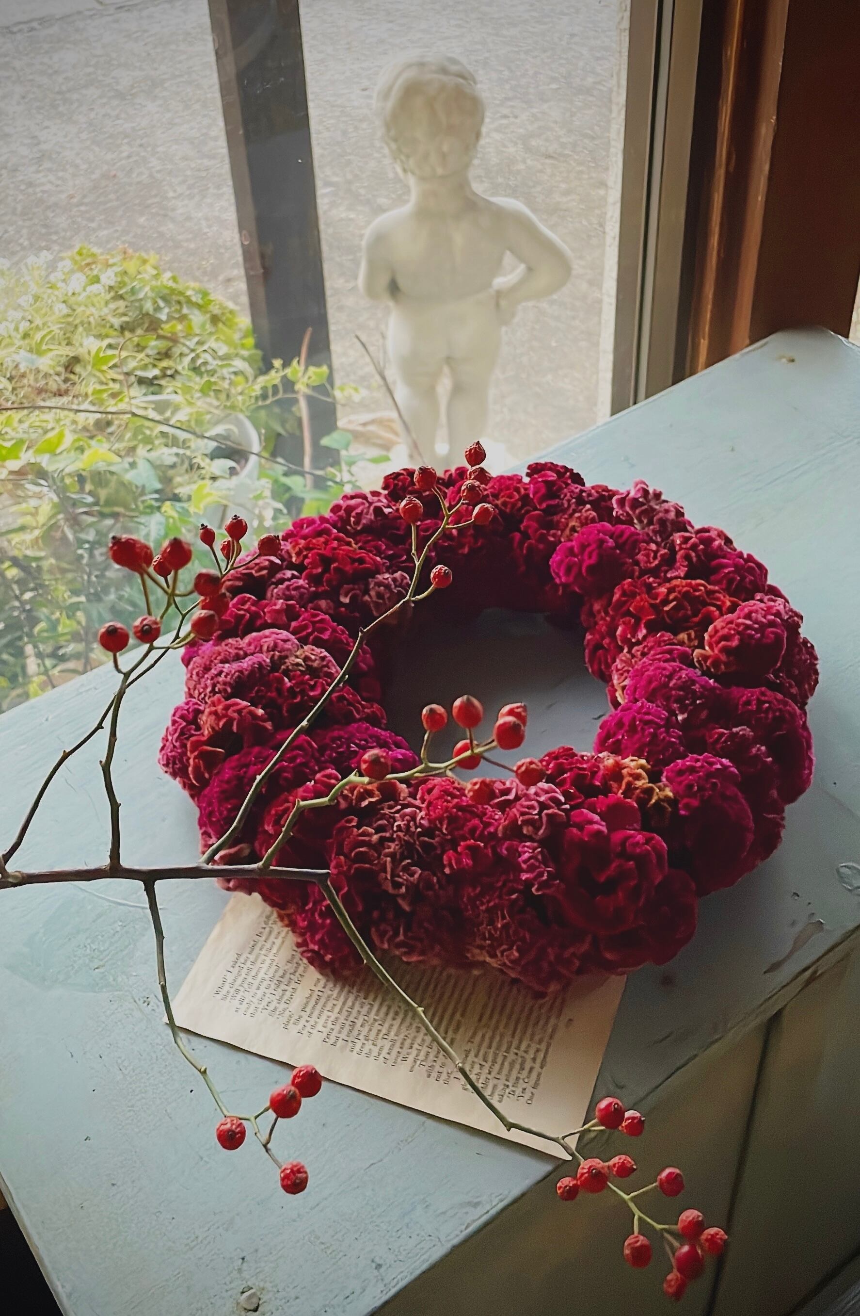 暖かなベルベット〜ケイトウのシンプルなリース