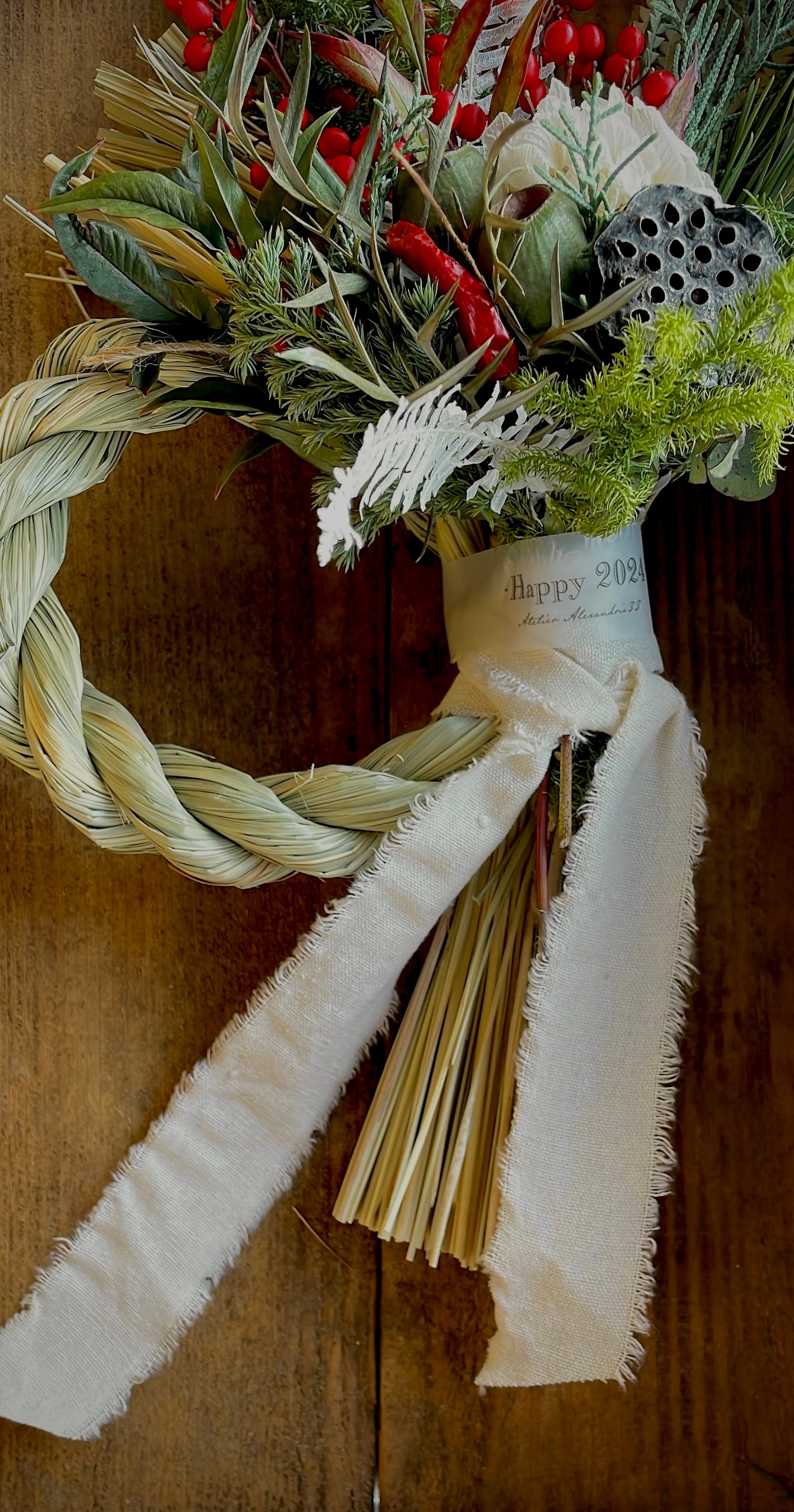 2024〜良運来るしめ縄飾り○ドライフラワー