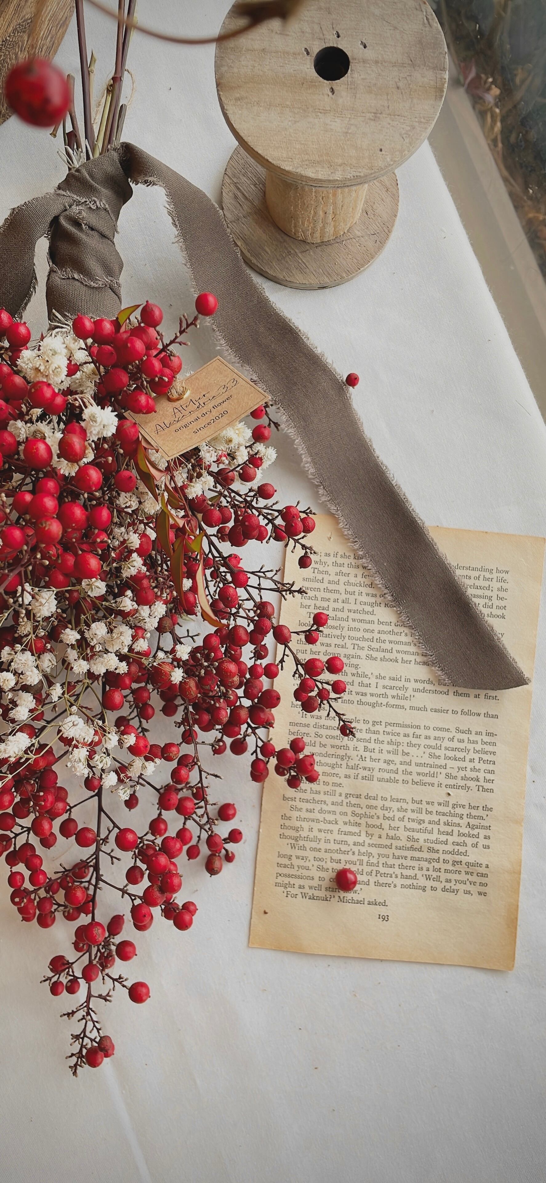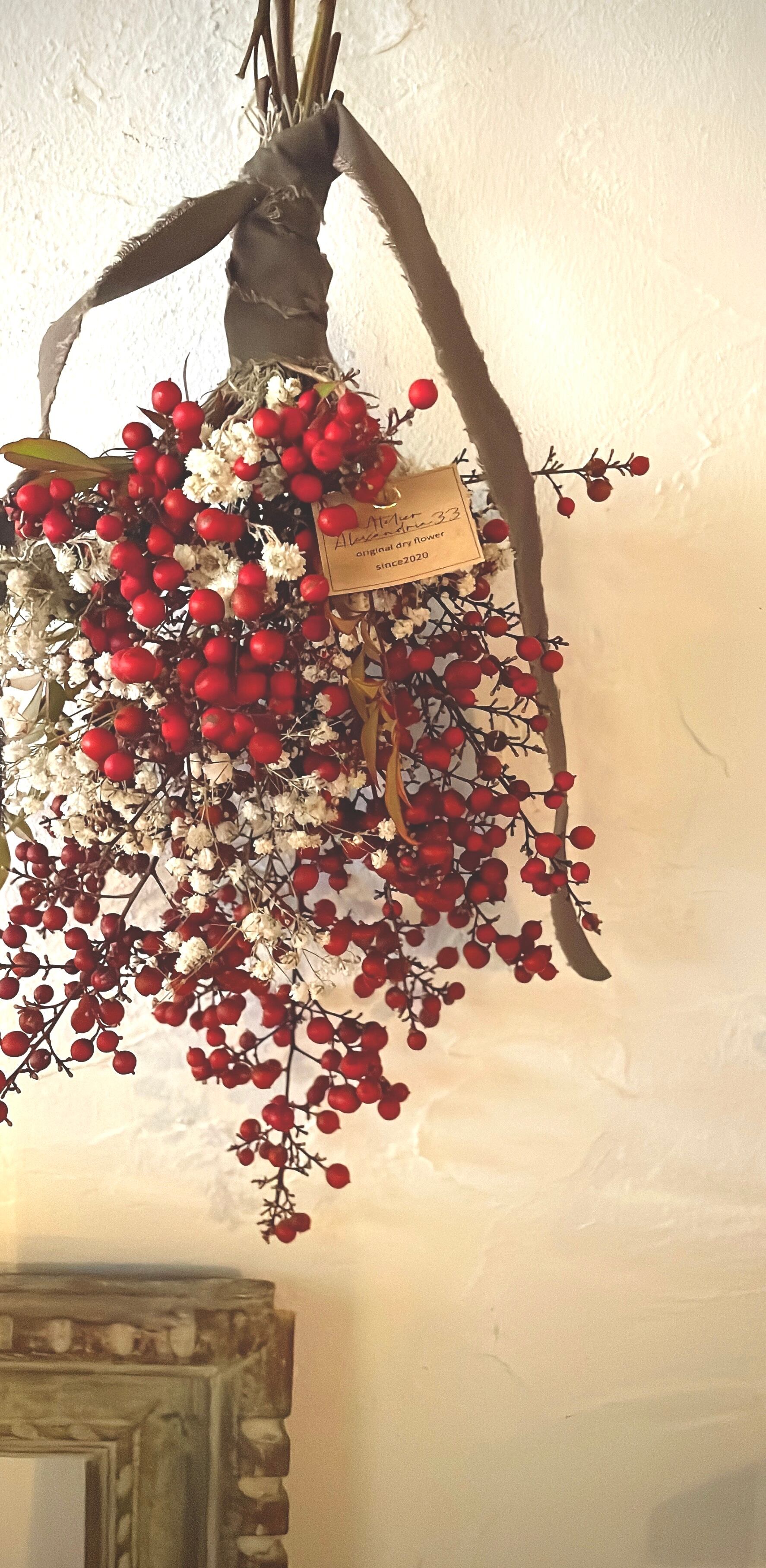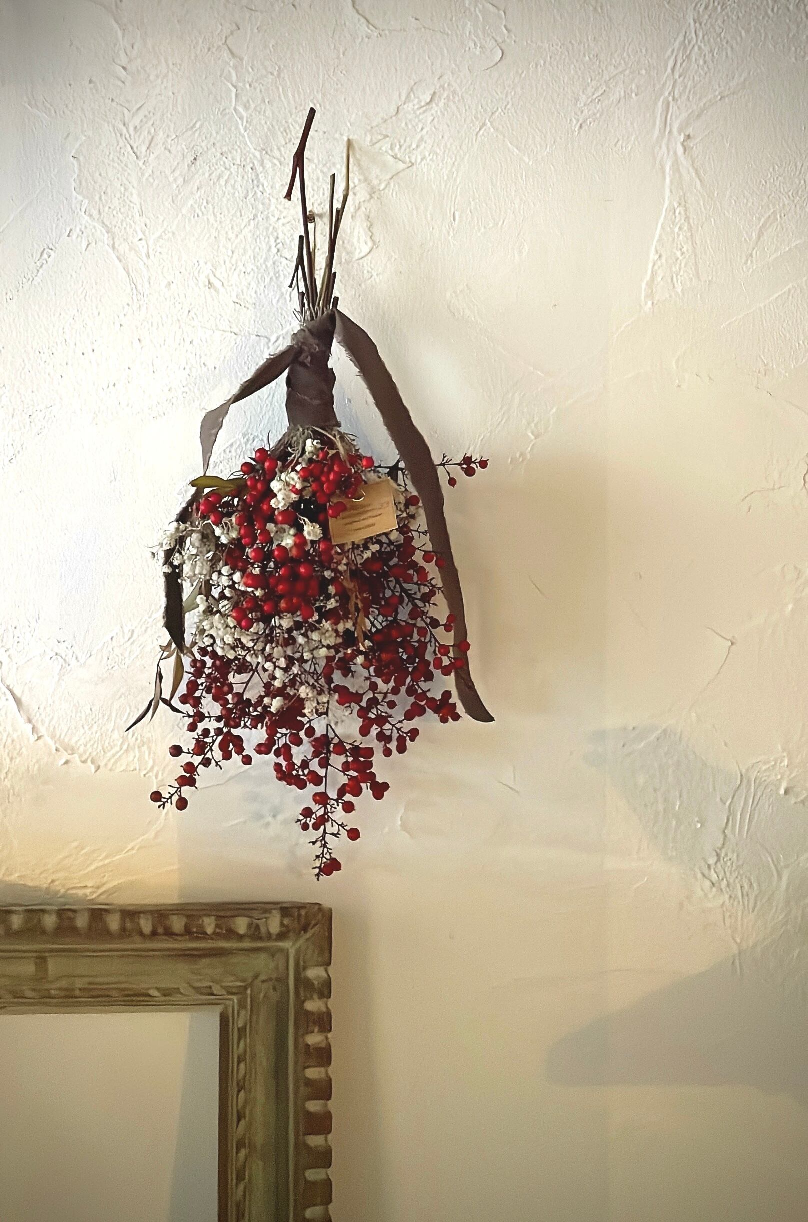 赤い実とかすみ草のスワッグ○ドライフラワースワッグ