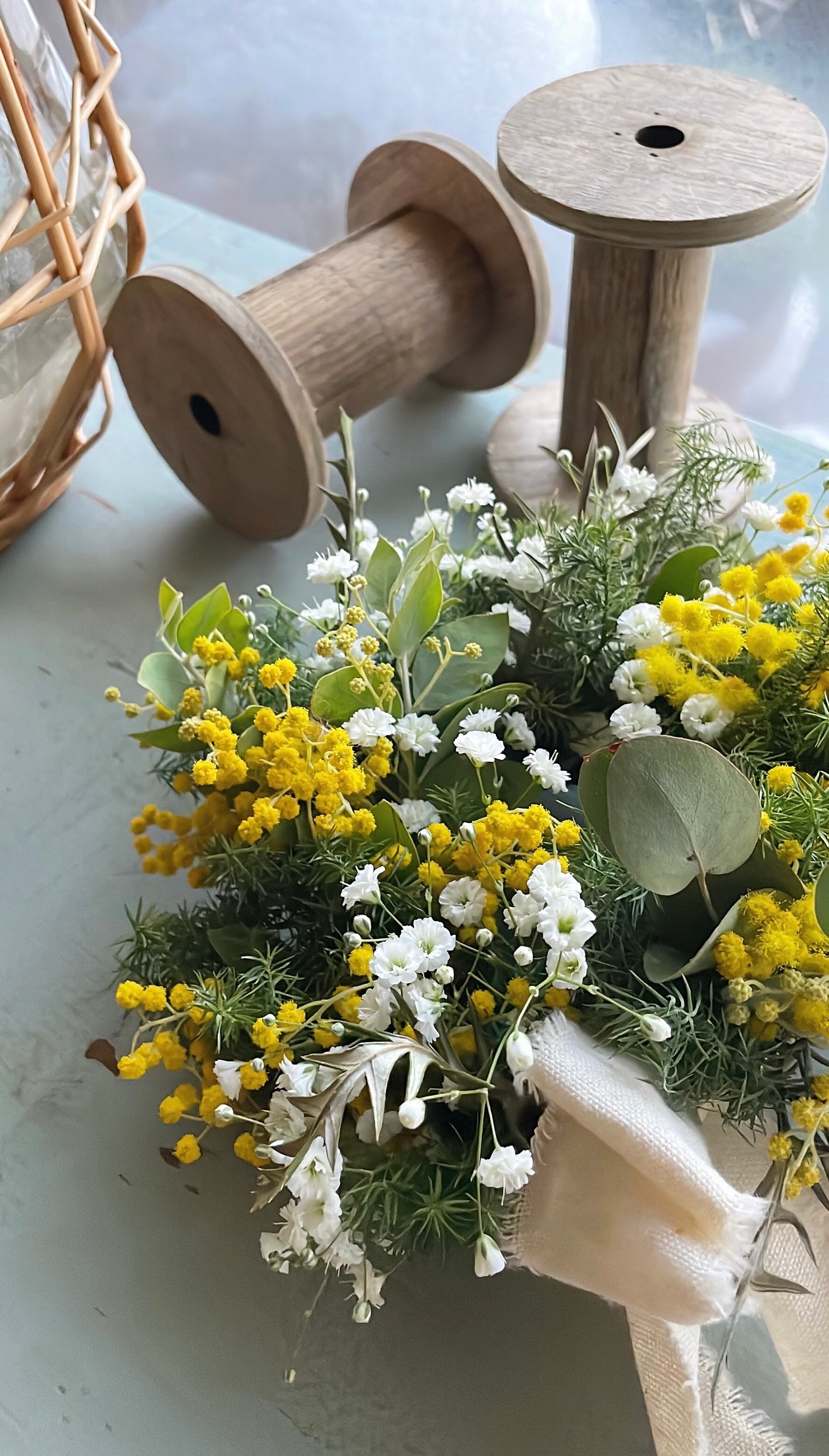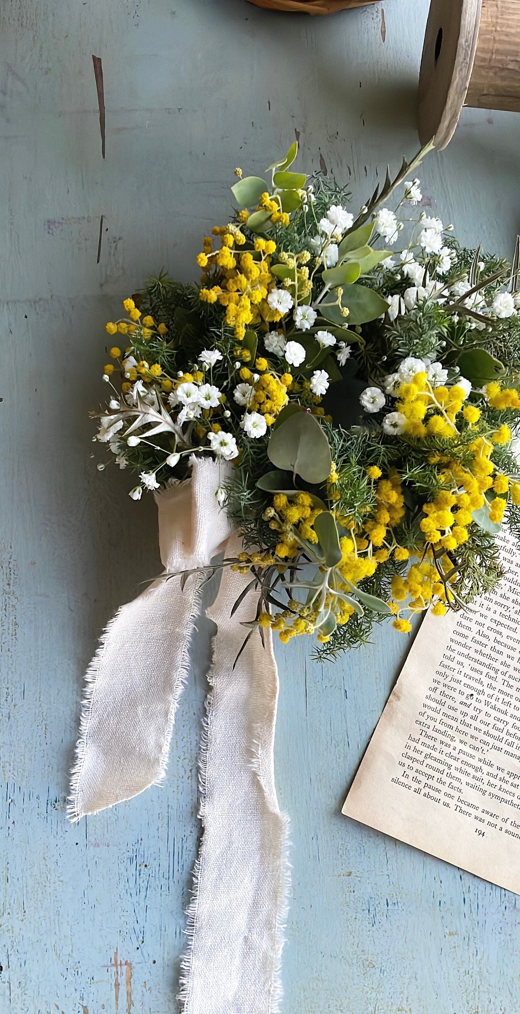 ハチミツレモン〜ミモザとかすみ草の春リース