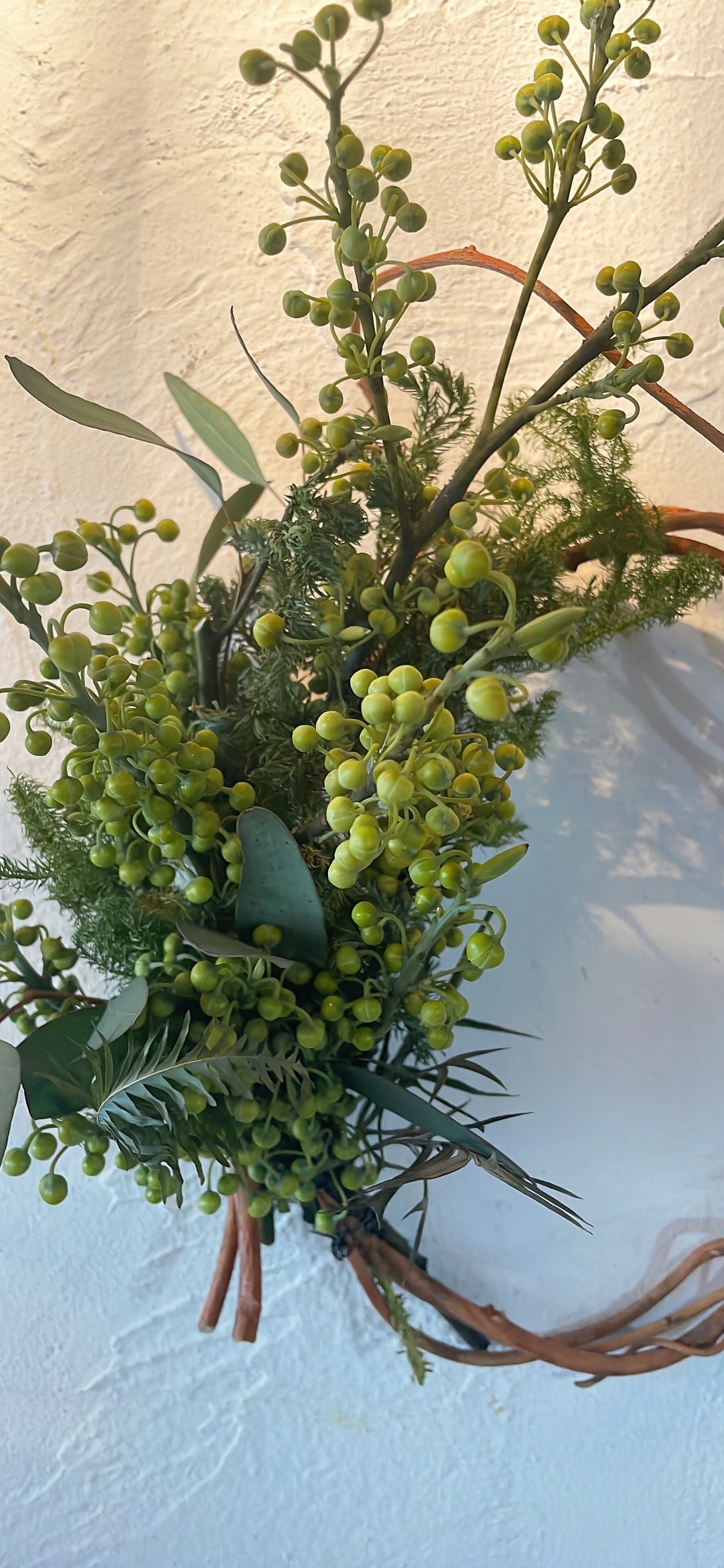 自然の中にあるアオモジのグリーンをうまく生かしたハーフリース