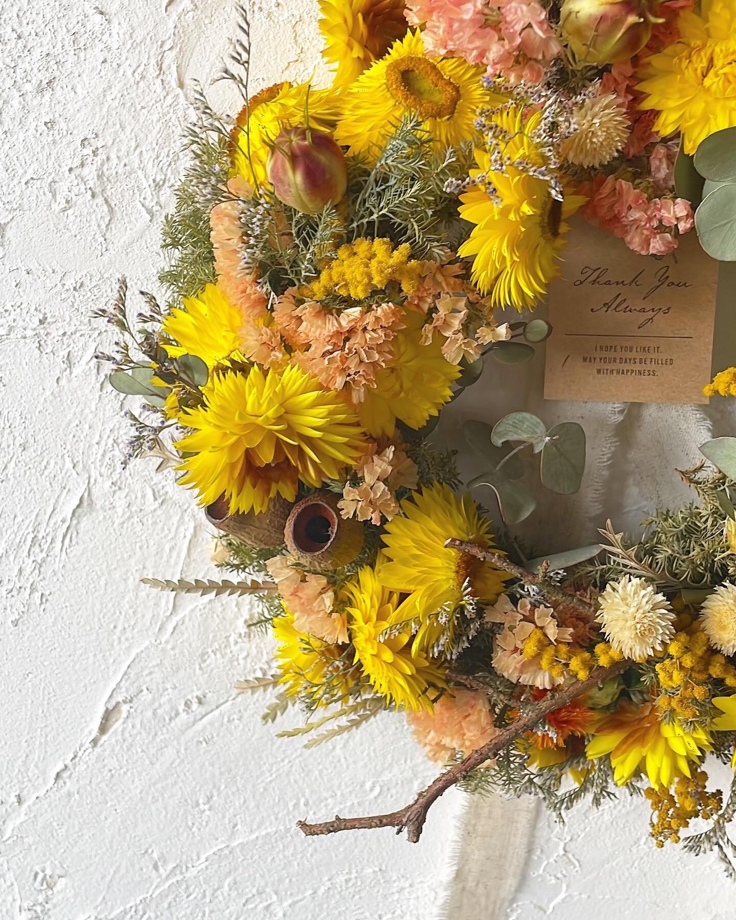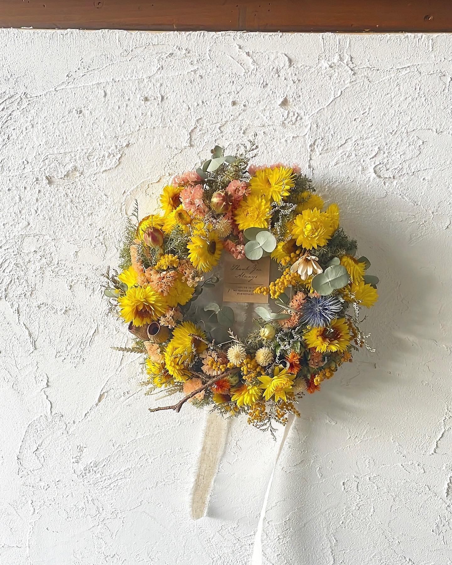 黄色の丸いリースは、金運と家族の笑顔、楽しさを風水として引き出します。