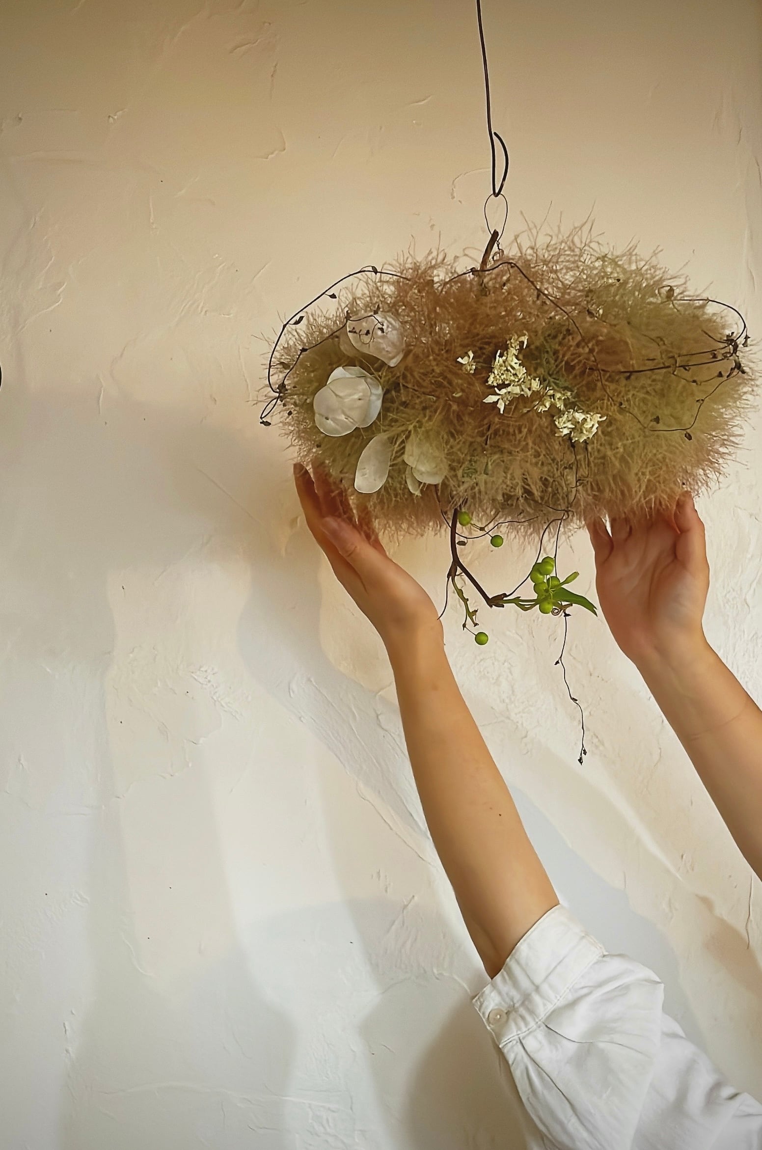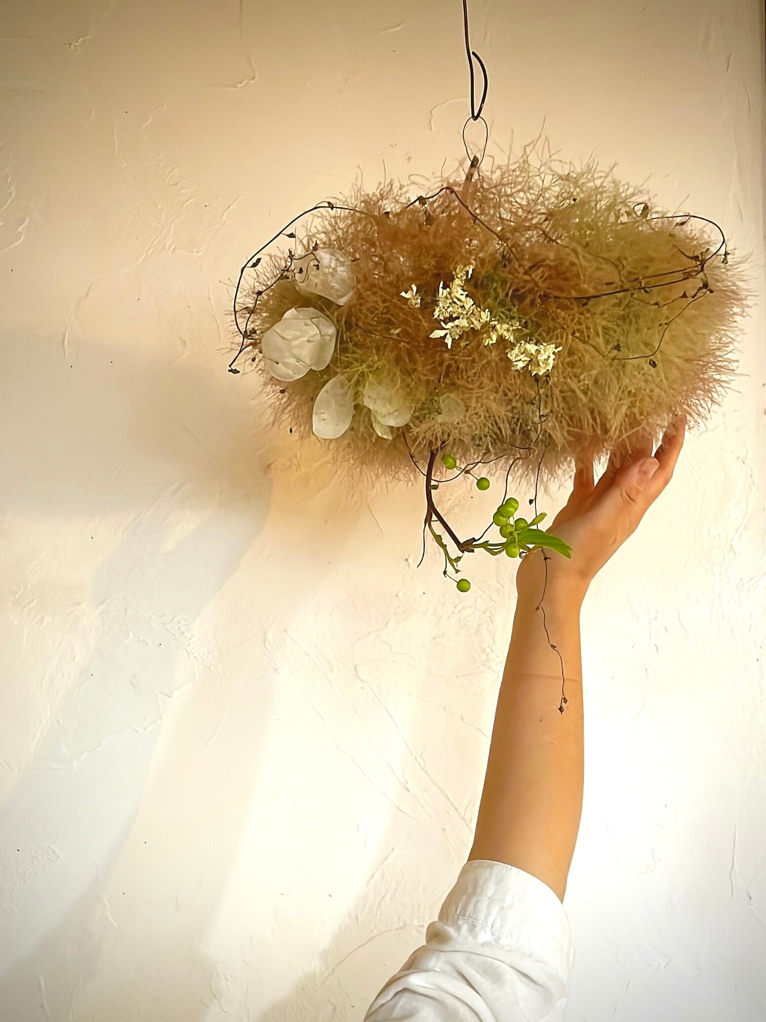 ワイヤープランツの動きをつけることで、単調過ぎず、飽きのこないフライングリース