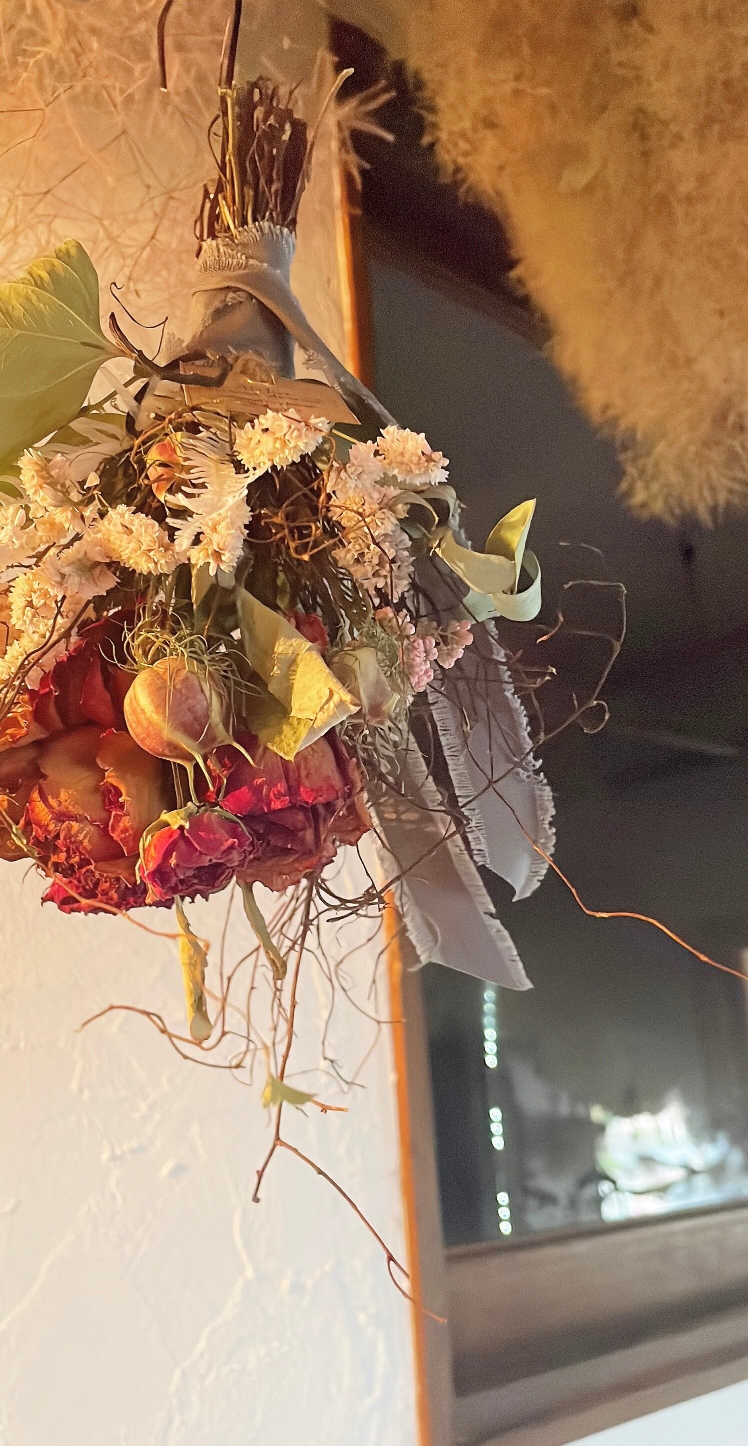 動きある、バラとニゲラのアンティークフライングブーケ◯ドライフラワー