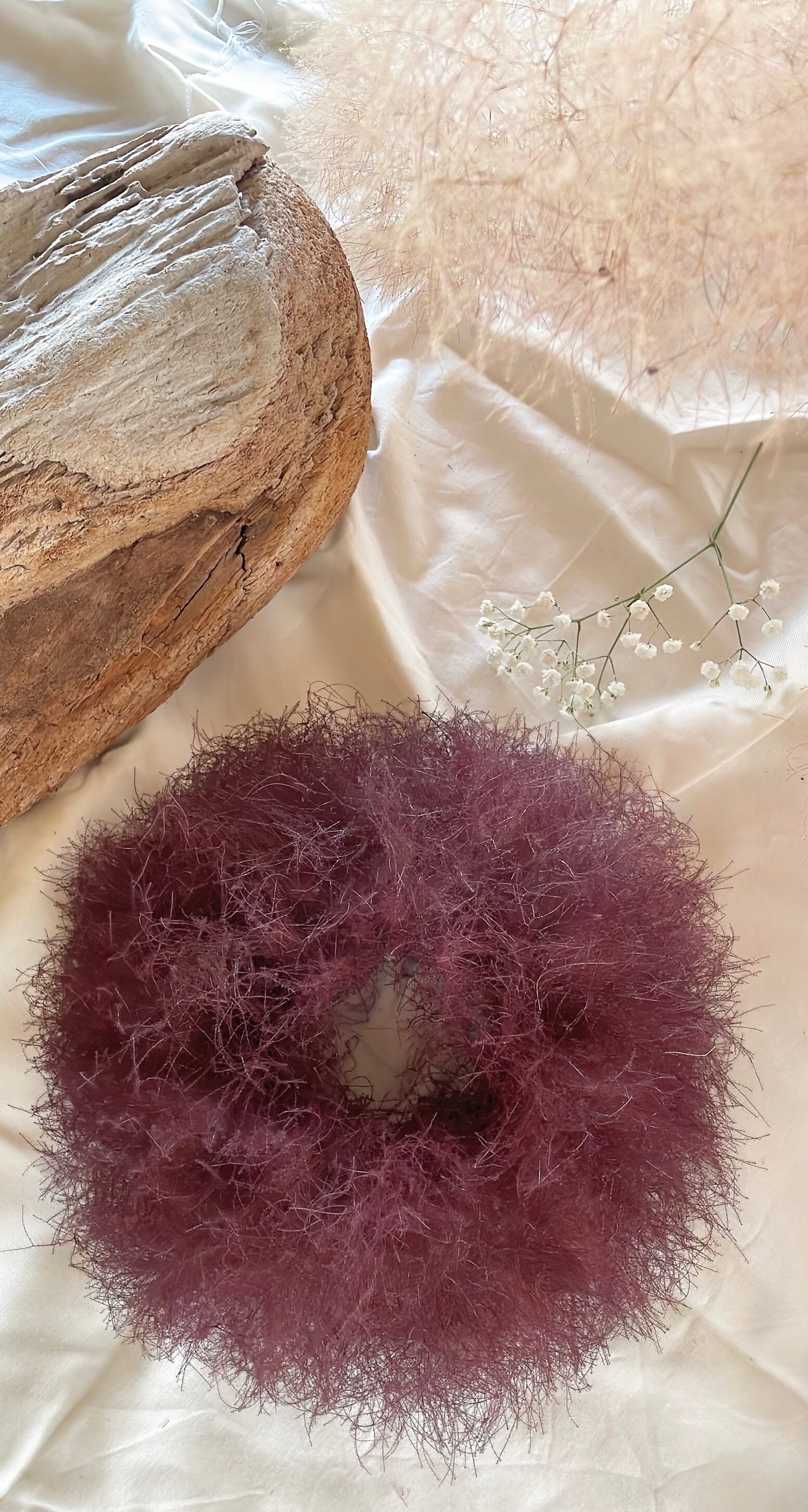 ボルドーカラーのスモークツリードライフラワーリース