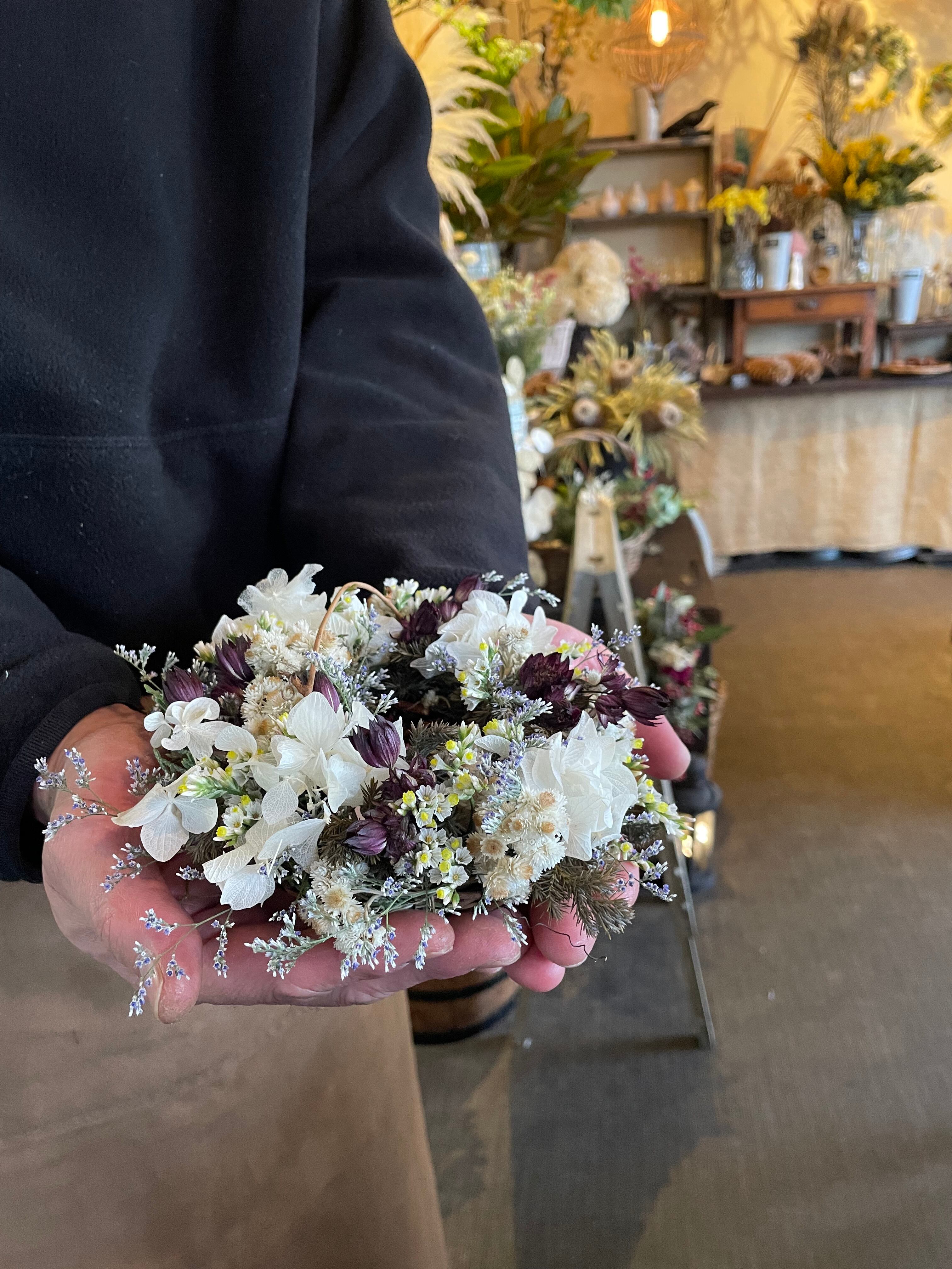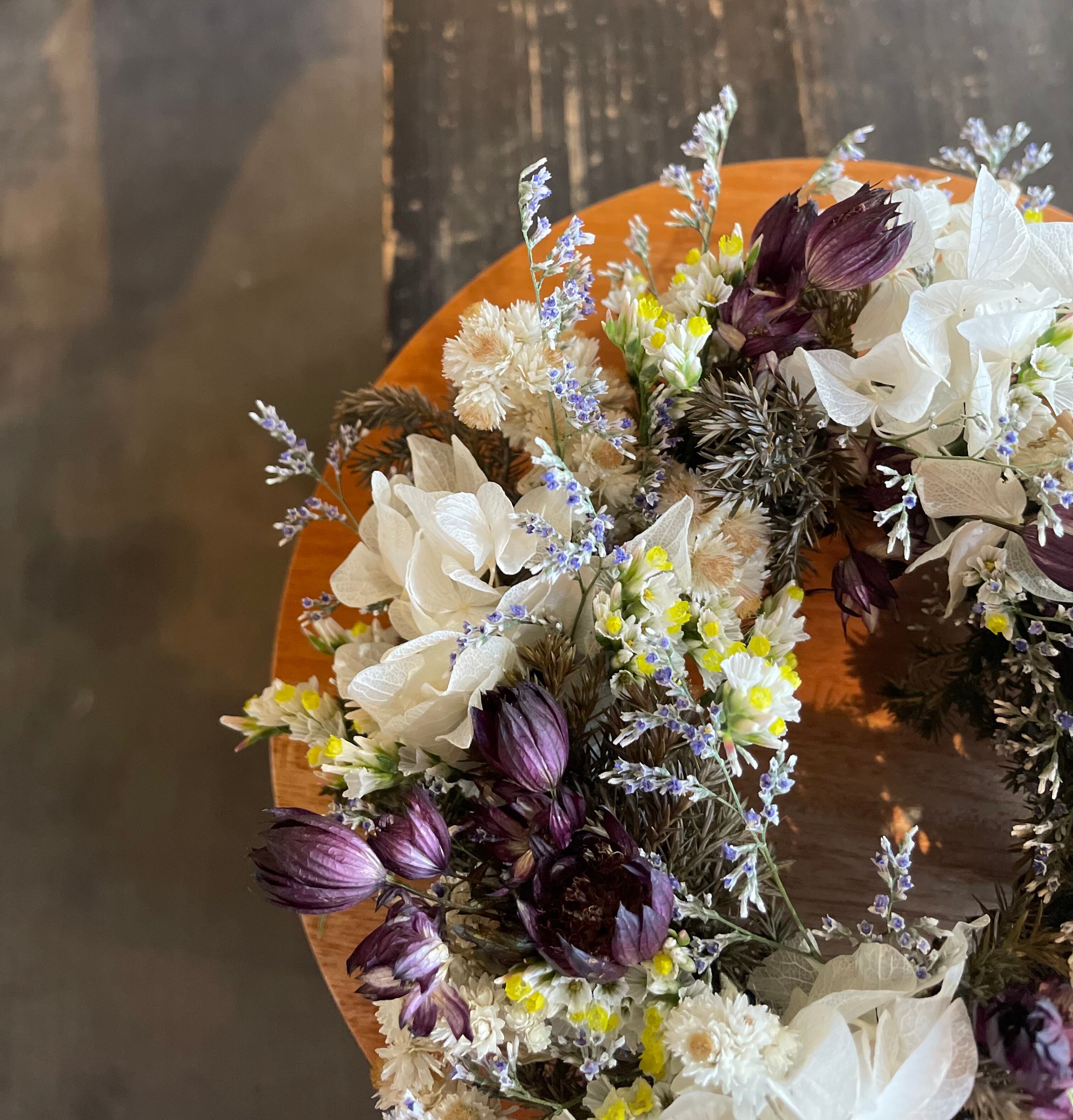このミニリースは、控えめでありながらも、自然の美しさを存分に引き出すために心を込めてデザインされたアイテムです。白いあじさいとアストランチアが繊細に組み合わさり、どんな空間でも穏やかな雰囲気を演出します。