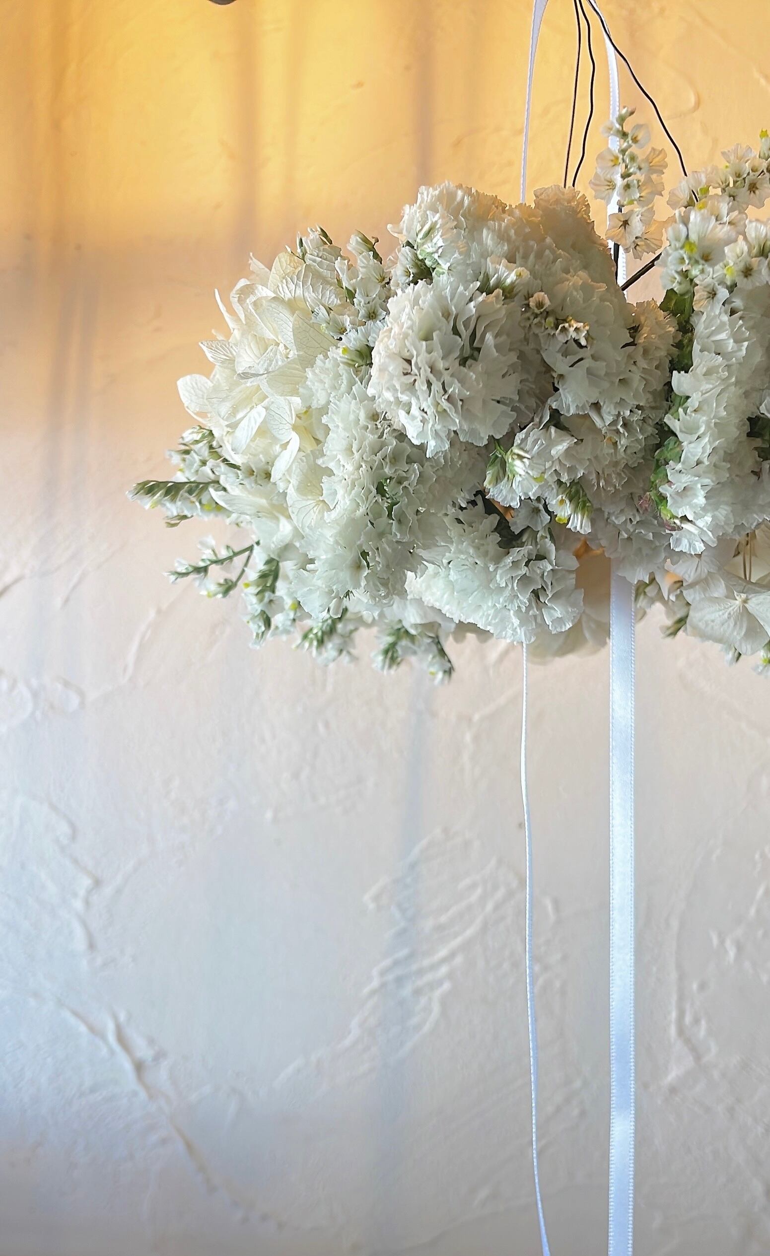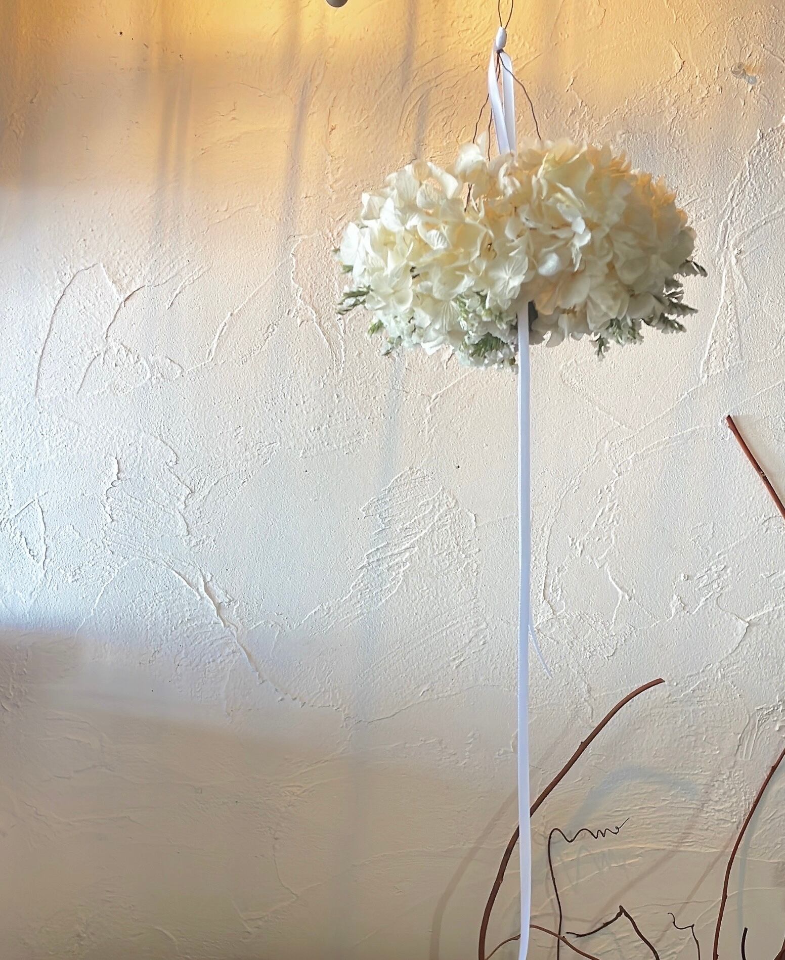 真っ白なフライングリースは、まるで雪のような純粋さが漂うインテリアアイテムです。