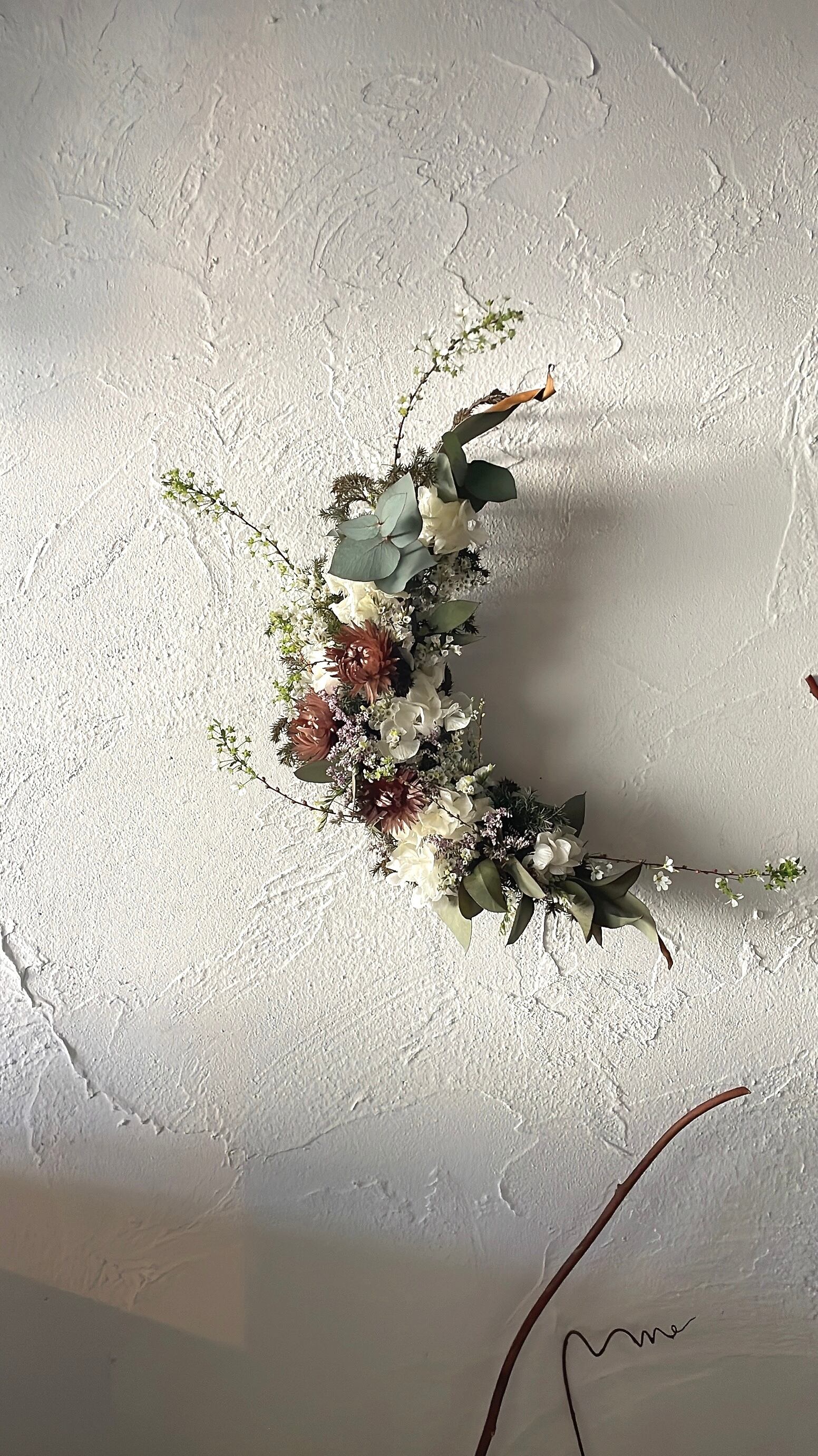 小花やグリーンで丁寧に紡いだ三日月のリース