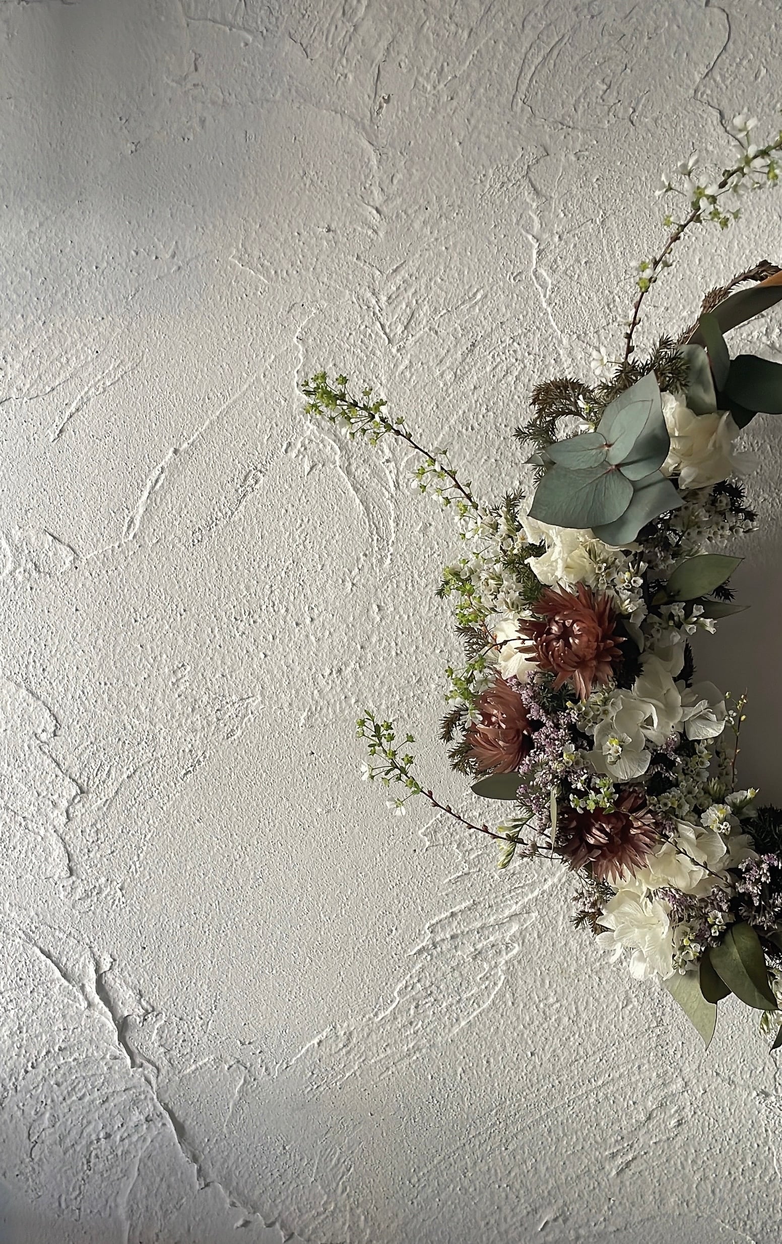 白あじさいと小花の三日月リース⚪︎ドライフラワーリース